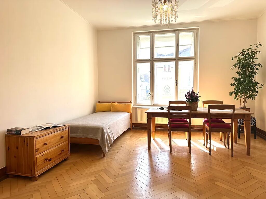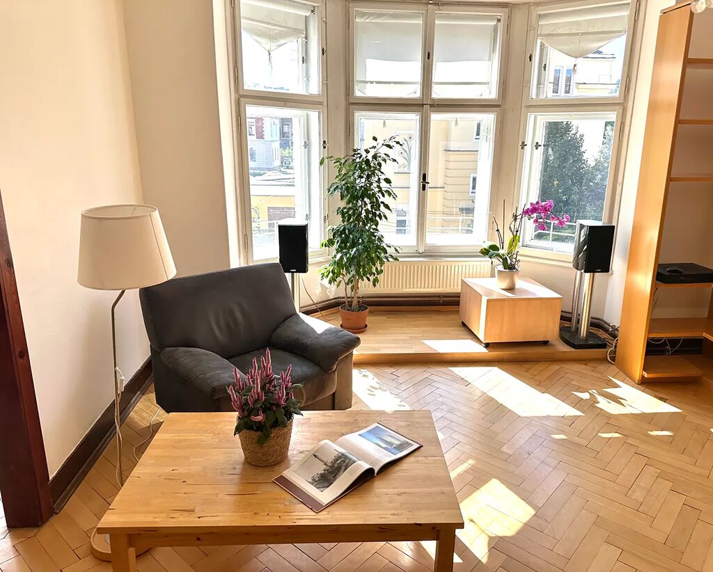 Část oken je orientována do klidného vnitrobloku s výhledem do zeleně. Byt může zůstat částečně vybavený – záleží na dohodě s novým nájemníkem.