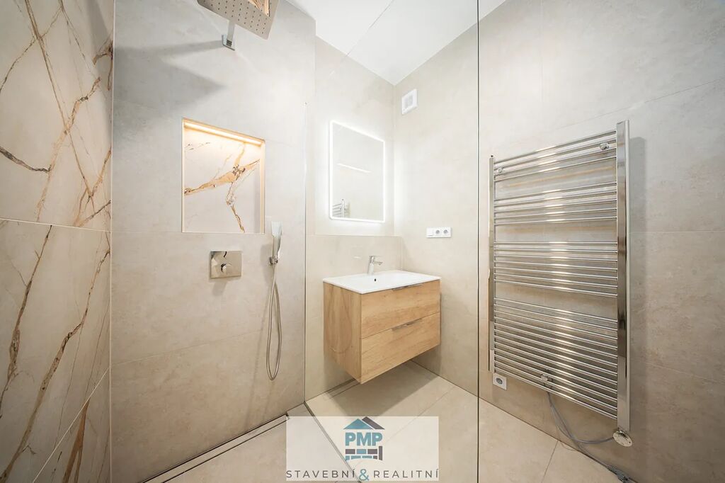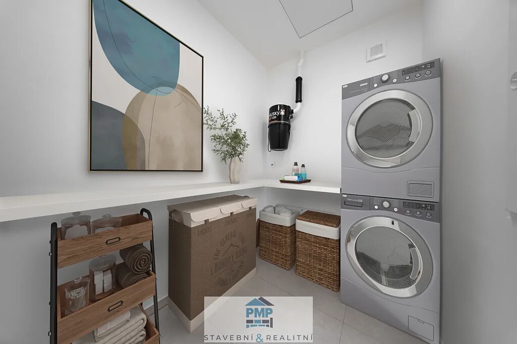 Byt je vybaven klimatizací v každé obytné místnosti, která zajistí příjemné prostředí i v horkých letních dnech. O vytápění a ohřev vody se stará centrální tepelné čerpadlo NIBE vzduch–voda, které je napojeno na podlahové teplovodní vytápění. Moderní standard doplňují dubové lepené podlahy, hliníková okna s izolačním trojsklem a venkovní žaluzie na elektrický pohon. Samozřejmostí je centrální vysavač, příprava na fotovoltaickou elektrárnu a využívání dešťové vody, stejně jako garáž s přípojkou pro wallbox a příprava na optický internet. Tento byt tak nabízí nejen útulné bydlení, ale i technickou připravenost pro budoucnost.