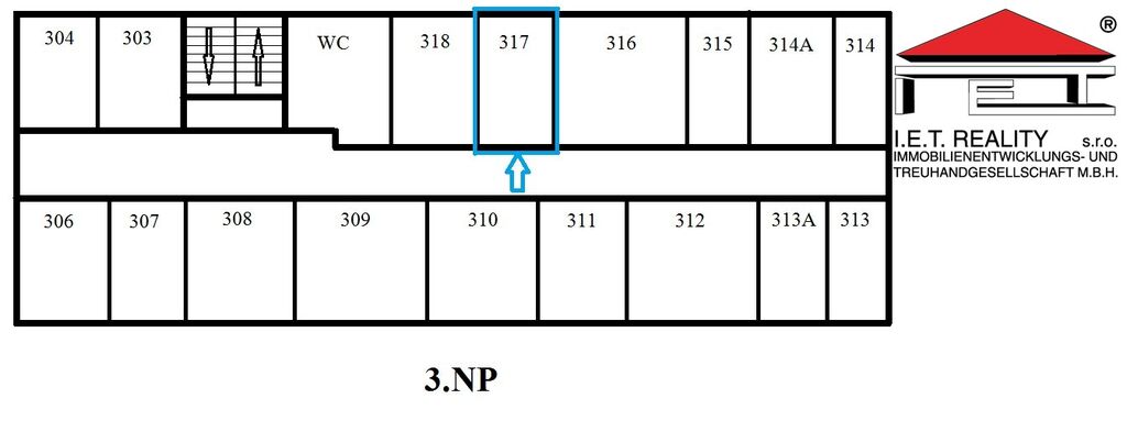Pronájem kanceláře č. 317 o velikosti 19,6 m², situované ve 3.NP komerční budovy na ul. Kroftova v Brně. Jedná se o místnost s vlastním samostatným vstupem a přívodem vody s umyvadlem. Jedna ze čtyř stěn je vybavena skříňovým archivem. V rámci podlaží je k dispozici sdílené sociální zařízení a kuchyňka. Kancelář má vlastní zabezpečovací okruh s přístupem 24/7 a k pronájmu je volná ihned. Možné je využívat také omezenou kapacitu parkovacích míst.