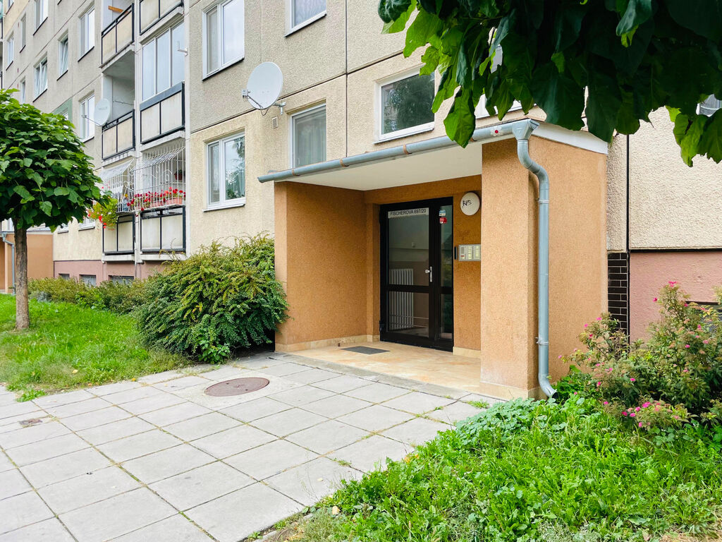 Pronájem slunného panelového bytu 2+1 na ulici Fischerova v Olomouci.