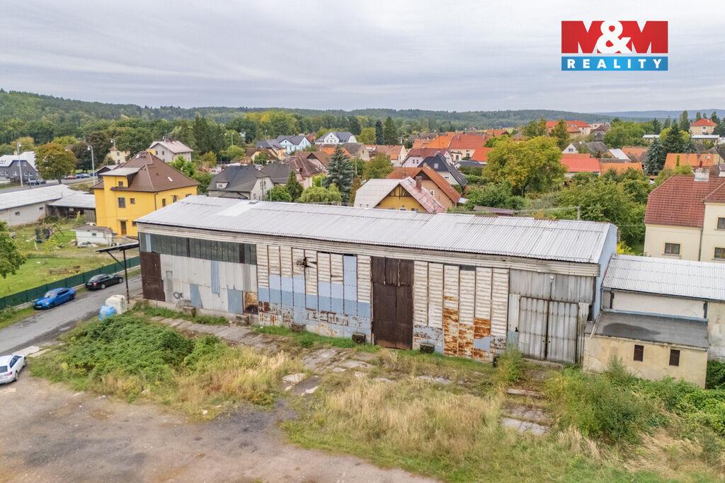 Nabízíme k prodeji rozsáhlý areál s dvěma skladovacími halami a pozemky o celkové výměře 8 431 m², situovaný v samotném centru obce Jesenice u Rakovníka – přímo na významném dopravním tahu Praha – Karlovy Vary, kde aktuálně probíhá výstavba dálnice D6. Lokalita tak získává zcela nový strategický význam pro podnikání i investici.