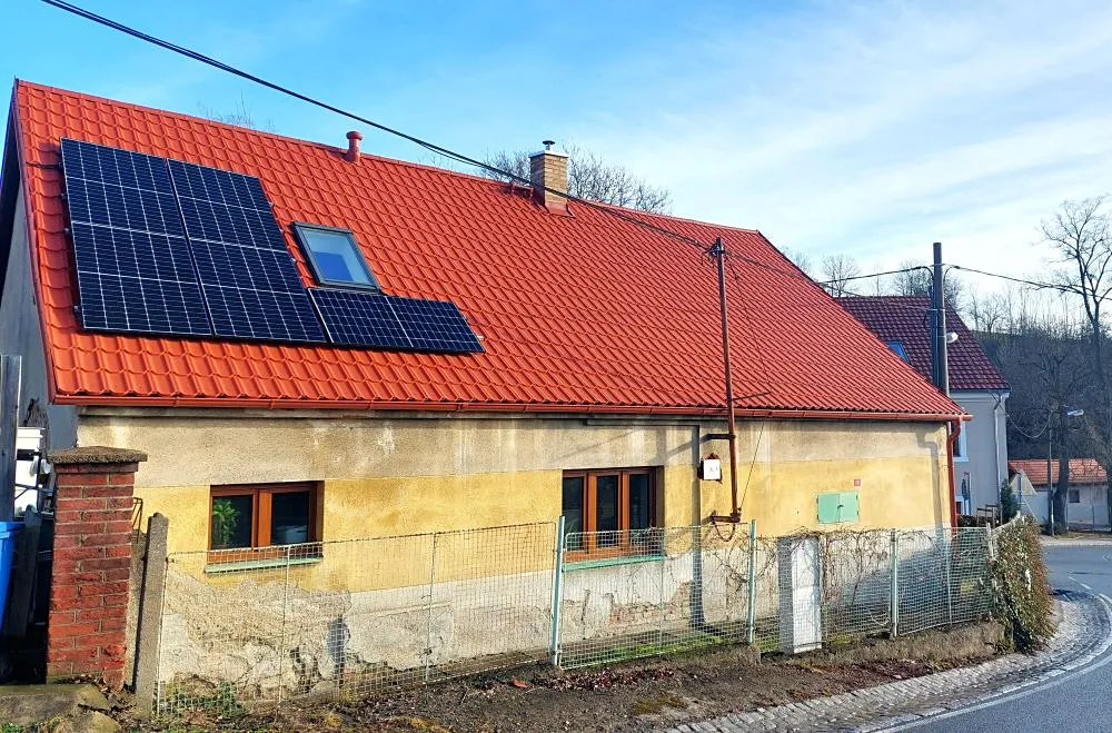 Na střeše jsou umístěné nové elektrovoltaické panely pro ohřev vody.