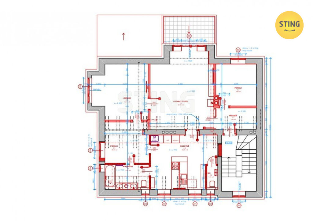 Vlastní vstup do bytu ze společné chodby. Zádveří s úložným prostorem, 4 pokoje, plus rozlehlá kuchyň, koupelna s WC, samostatné WC a vlastní velký balkón. Půdorys viz fotografie. Po dohodě s majitelem možnost využit zahradu. Za příplatek, možnost parkovat jedno auto v garáži. Kolem pozemku je vysoký plot. Na ulici je možnost parkovat vozidlo před domem.