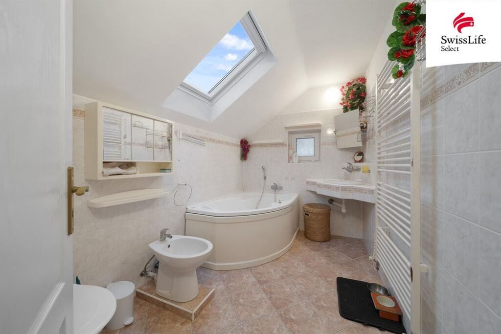 V domě se nachází dva funkčně oddělené byty, které mají společnou pouze vstupní chodbu. Ve spodním bytě je obývací pokoj propojený s kychyní a vstupem na balkon, ložnice, menší pokoj aktuálně využívaný jako pracovna a veliká koupelna. Z chodby je přístupná i druhá, menší pracovna. Druhý byt je dispozičně řešen jako 3+KK se šatnou. V podkroví se navíc nachází další obytný prostor k využití pro hosty a nebo jako dětský pokojíček třeba pro starší děti. Kromě garáže je na pozemku kryté stání pro další dva vozy.