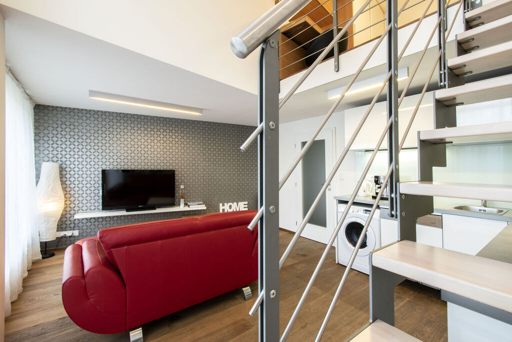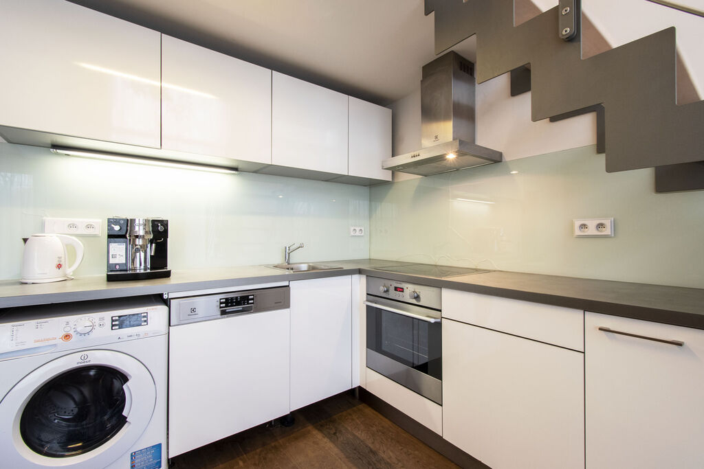 Byt se nabízí vybavený. Kuchyňský kout je vybaven kuchyňskou linkou se spotřebiči, včetně pračky. Obývací část je vybavena pohodlným posezením, konferenčním stolkem a televizí. V druhém patře se nachází vybavená ložnice. Koupelna disponuje vanou, umyvadlem se zrcadlem a toaletou.