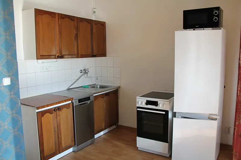 Byt je nezařízený. Z vybavení pračka, myčka, lednice, mikovlnka, el. sporák.