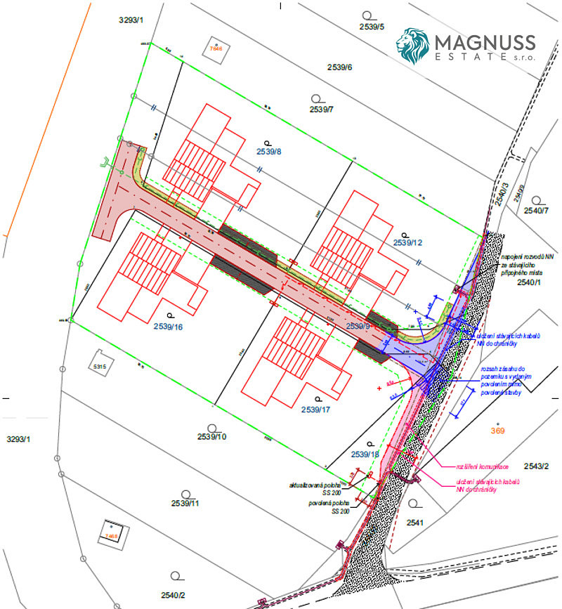 základová deska domu, veškeré přípojky (elektřina, voda, kanalizace), projektová dokumentace a stavební povolení,