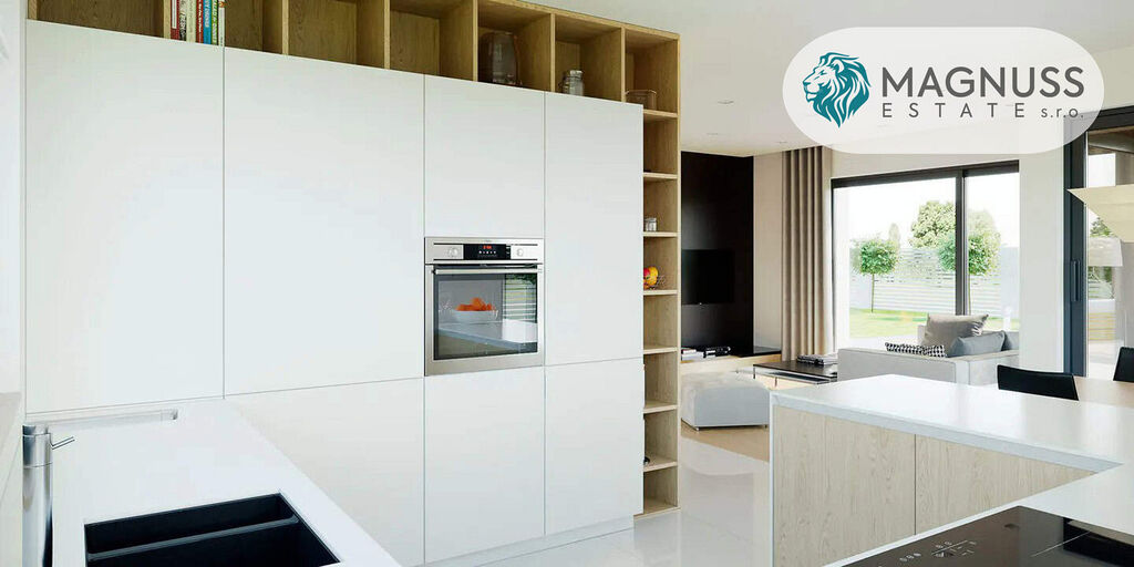 Každý dům je vybaven systémem chytrá domácnost, který umožňuje pohodlné ovládání všech funkcí domu přes mobilní aplikaci.