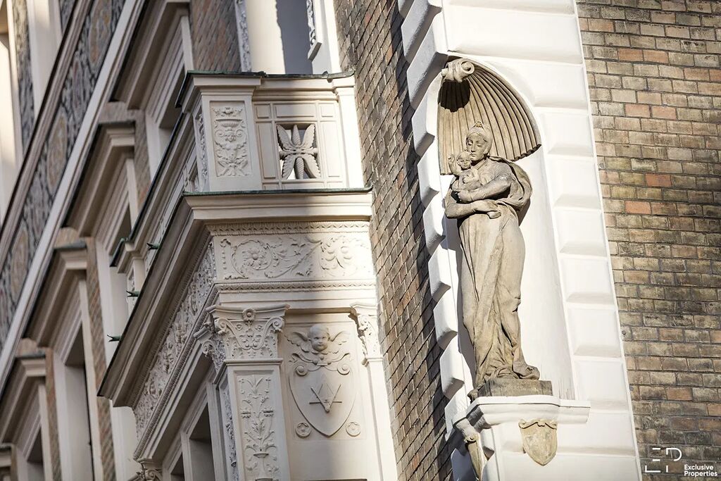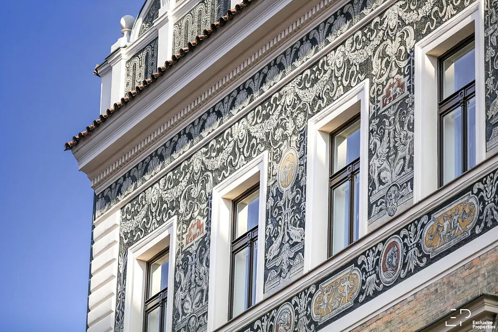Luxusní byt 4+kk o rozloze 135 m² se nachází ve 3. podlaží noblesní rezidence palácového stylu. Ta byla původně vystavěna v 15. století a na konci 19. století přestavěna do novorenesanční podoby předním architektem Antonínem Wiehlem. Fasáda je zdobena freskami Mikoláše Alše, interiéry se pyšní toskánskými mramorovými sloupy, původním italským terasem a precizní štukovou výzdobou. Atmosféru historické noblesy doplňují špičkové moderní materiály a nejnovější inteligentní technologie.
