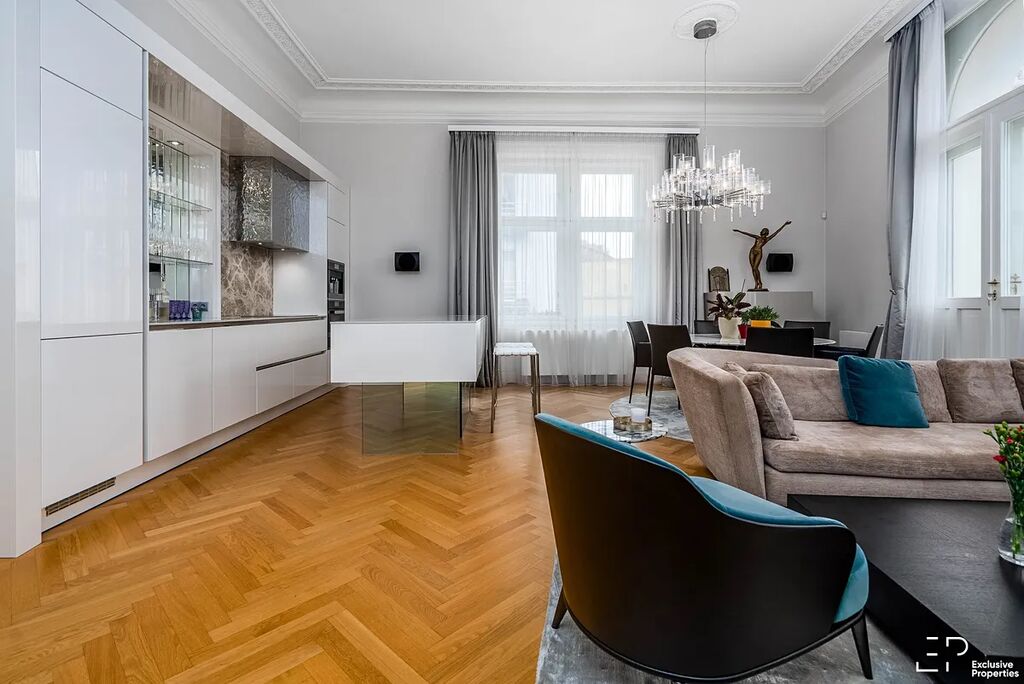 Tento byt představuje dokonalou harmonii historie a současného luxusu – jedinečnou příležitost k reprezentativnímu bydlení v centru hlavního města.