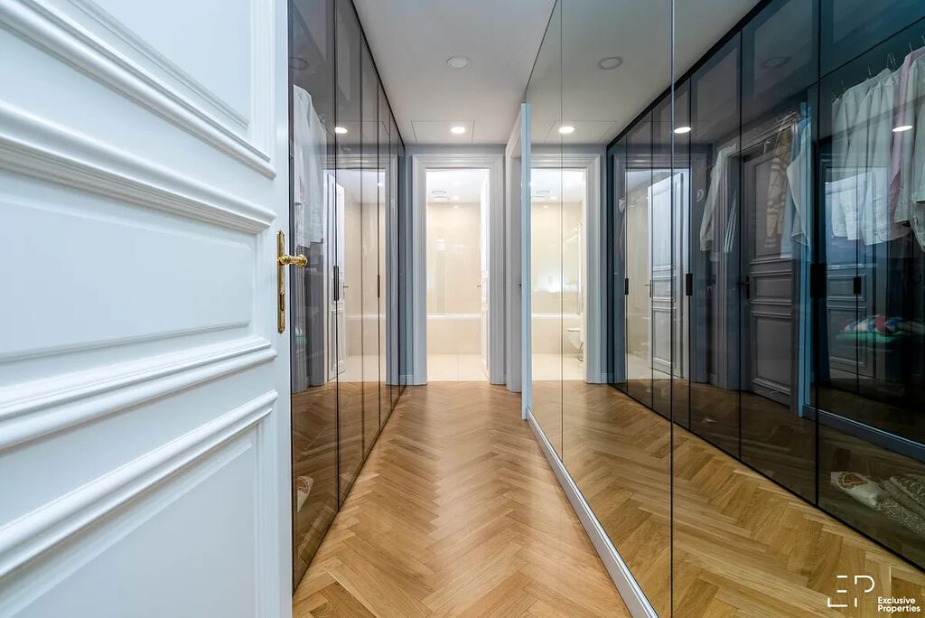 Rezidenci dominuje majestátní vstup s bezpečnostními dveřmi na čip. Prostorné foyer navazuje na prosklený výtah s výhledem do soukromé zahrady, případně na široké tříramenné schodiště zdobené vzácným mramorem a balustrovým zábradlím.