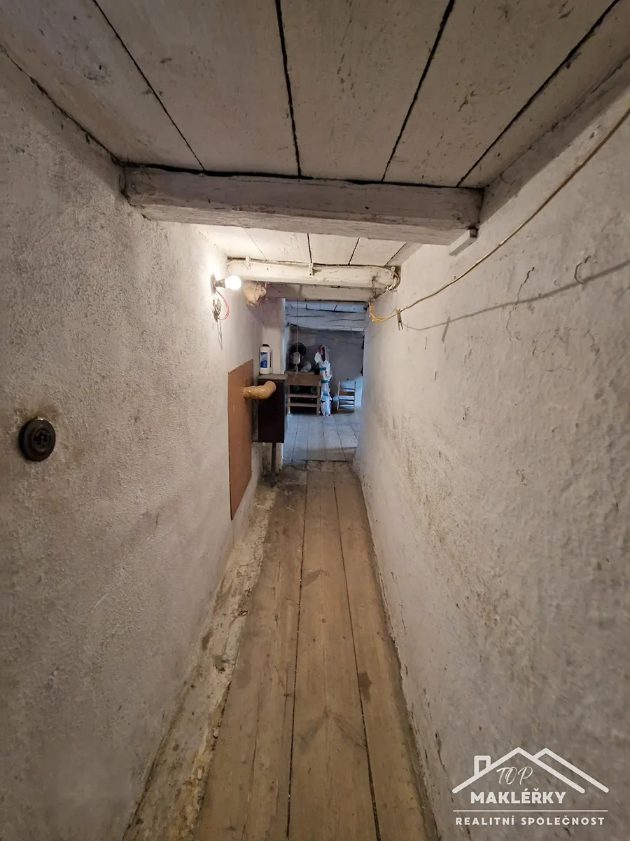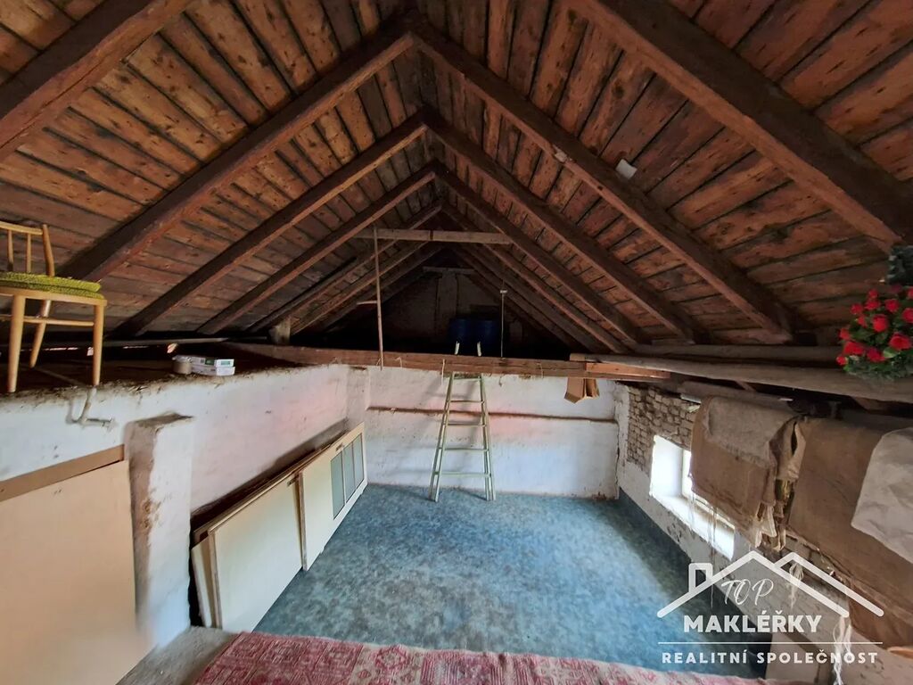 Nabízím Vám k prodeji řadový dům s půdním prostorem 20 m² + komora na půdě 15 m² (nižší strop) s dispozicí 2+1 o užitné ploše 50 m², na dvoře se nachází vedlejší stavba: dílna o výměře 15m² a zděný sklep 7 m². Celková výměra zastavěné plochy a nádvoří 146 m². Dále zahrádka (svahovitá) oddělená plechovým plotem a dveřmi 255 m², kde v zadní části zahrádky se nachází vrata. (Možnost parkování).