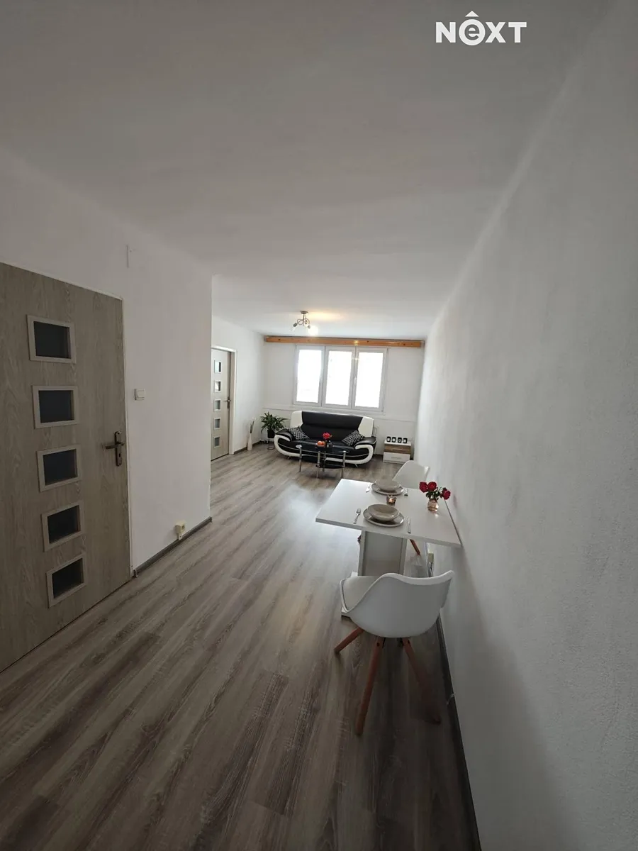 Byt prošel rekonstrukcí a nabízí moderní a pohodlné bydlení. Nová plastová okna a zateplená fasáda zajišťují úsporu energií, zděné jádro a nová koupelna se sprchovým koutem a WC působí čistě a vkusně. Laminátové podlahy dodávají bytu svěží a útulnou atmosféru. Velkou výhodou je také balkon, který navazuje na ložnici a poskytuje příjemné místo pro ranní kávu nebo večerní posezení. Dispozice bytu je velmi praktická – obývací pokoj s jídelním koutem působí prostorně, kuchyně je samostatná a dobře řešená, a nechybí ani předsíň a sklepní kóje, která nabízí další úložné prostory.