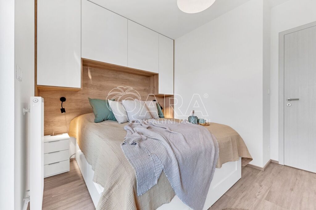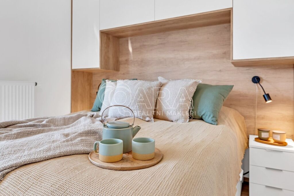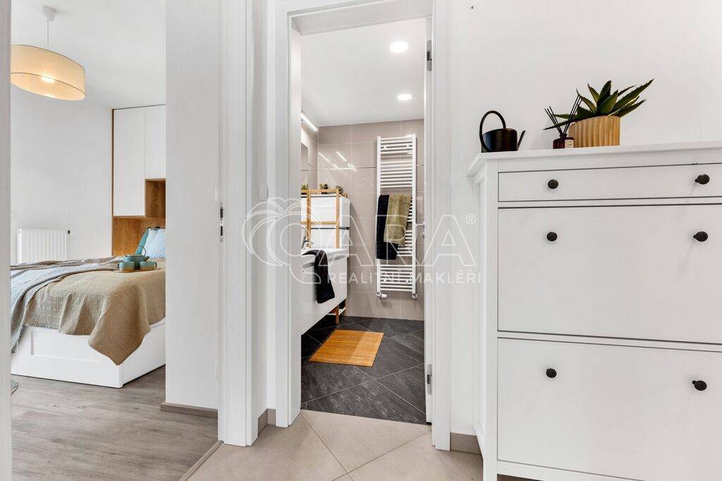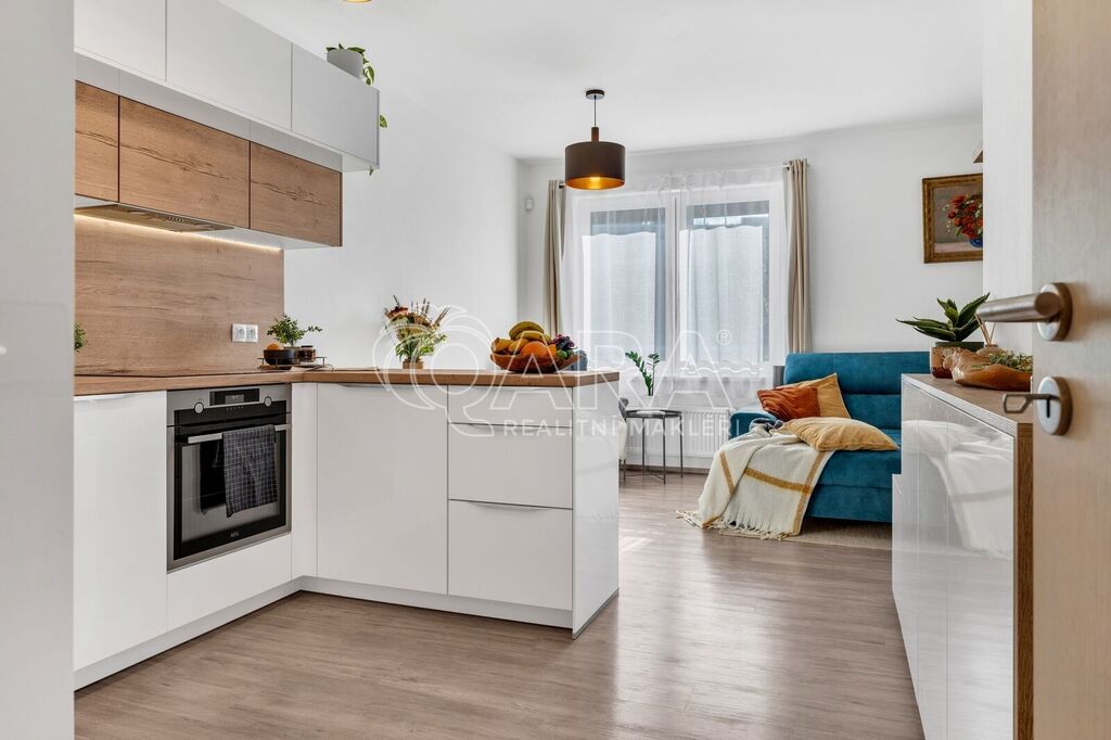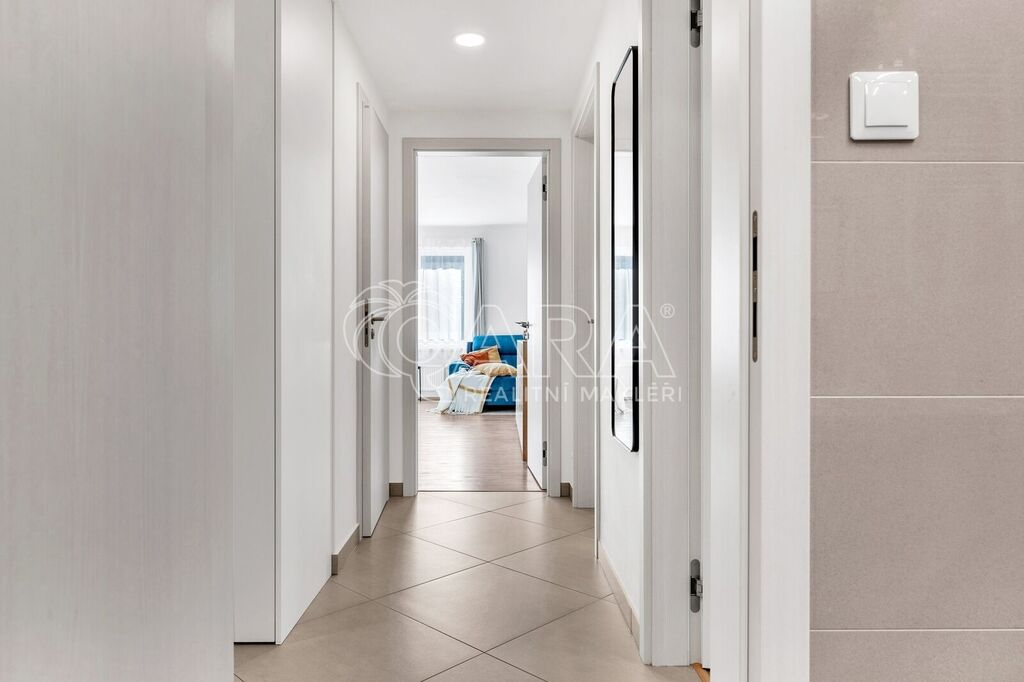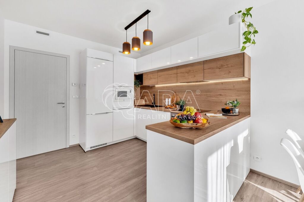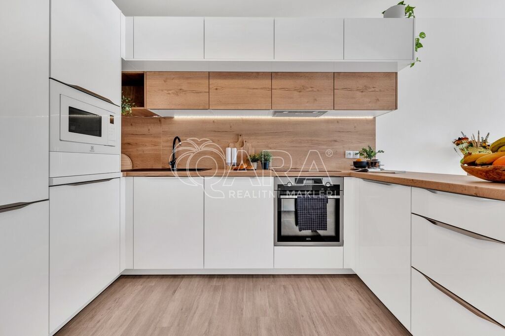 Byt byl dokončen v roce 2022 ve vyšším standardu a stále „voní novotou“. Součástí je moderní kuchyňská linka na míru se spotřebiči AEG a Elektrolux (trouba, indukce, lednice s mrazákem, myčka, digestoř, mikrovlnka), kvalitní vinylová podlaha, podlahové vytápění v koupelně s časovačem, elegantní bezfalcové interiérové dveře s magnetickými zámky, předokenní rolety, systém rekuperace vzduchu i zabezpečovací systém. Oceníte také praktickou technickou místnost pro pračku a sušičku.