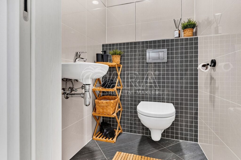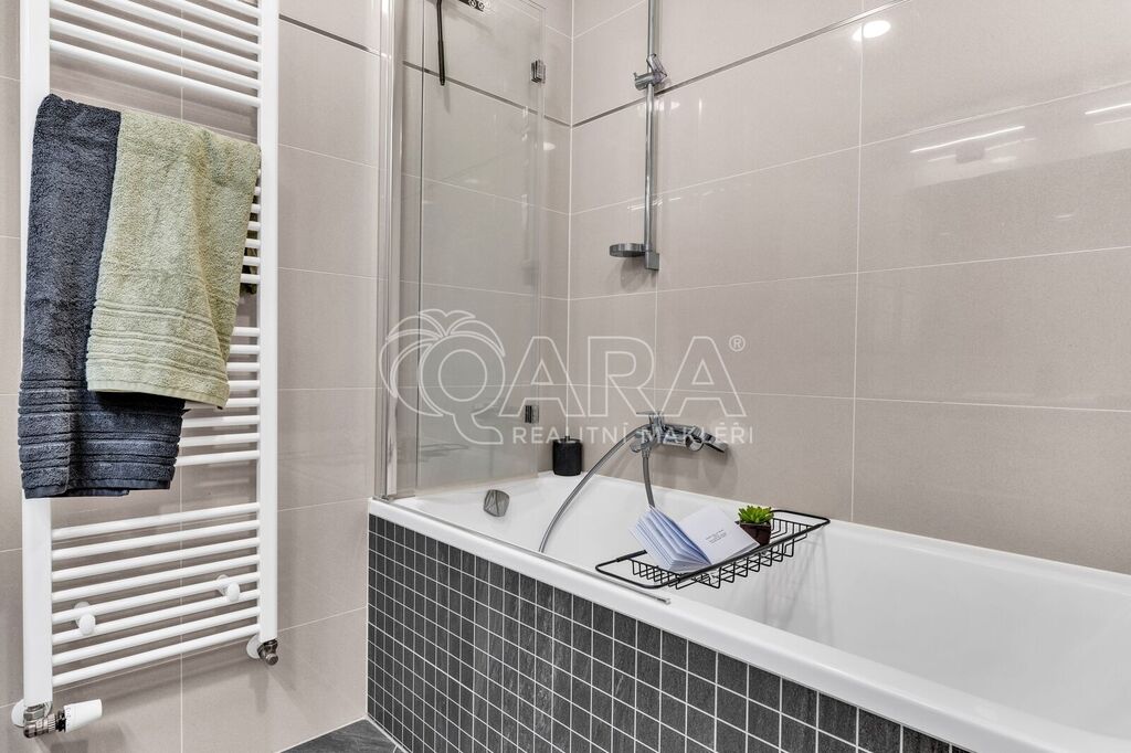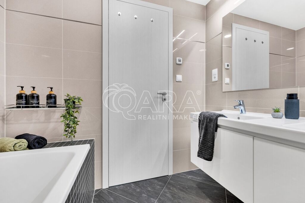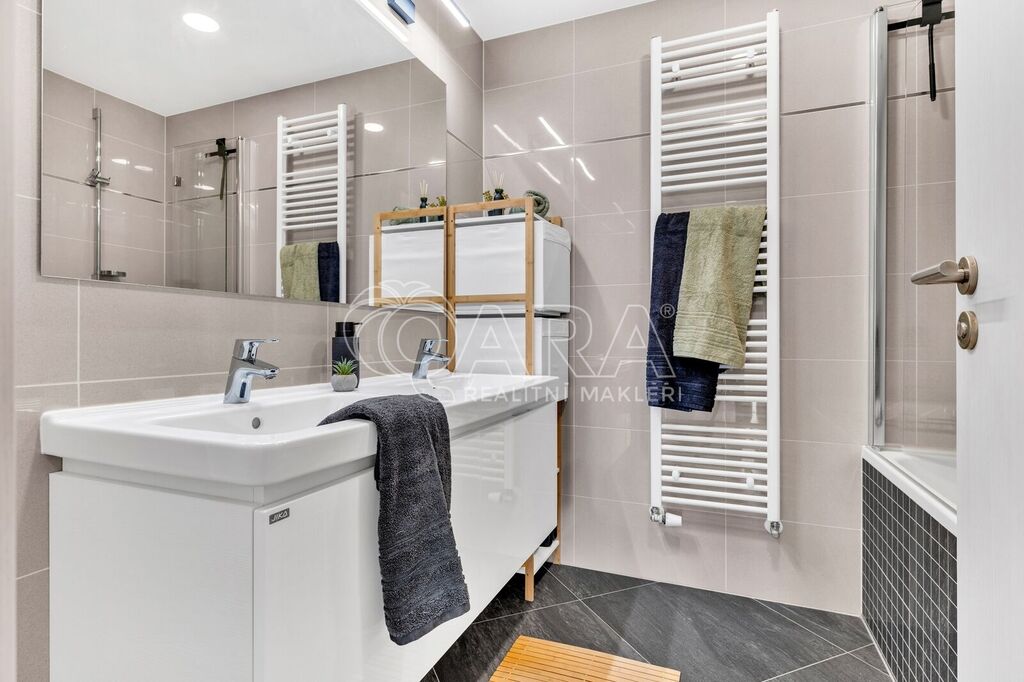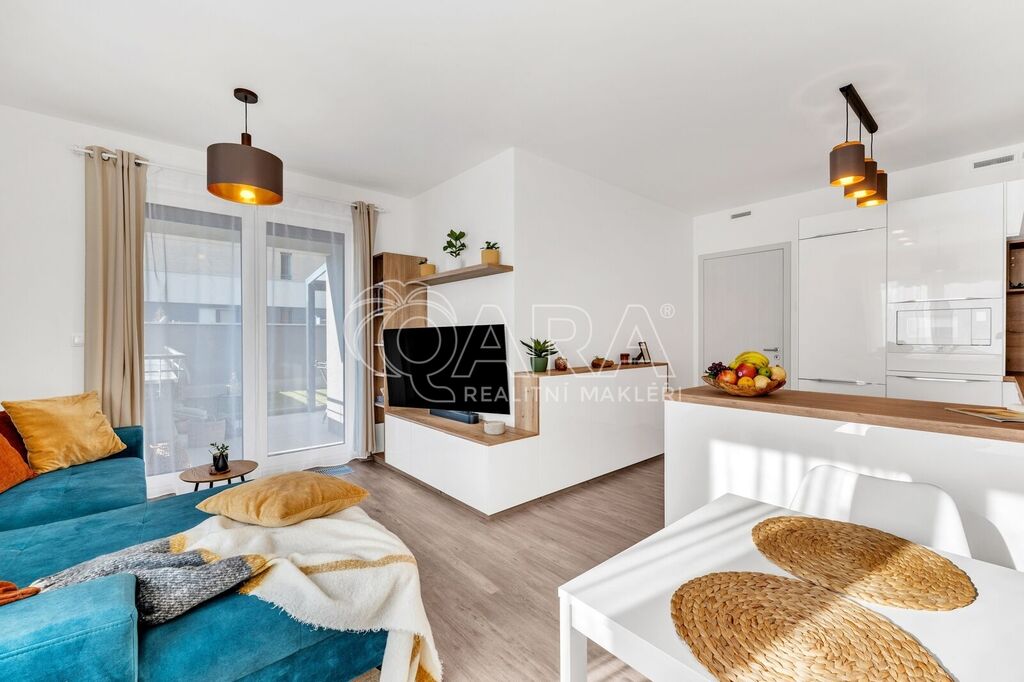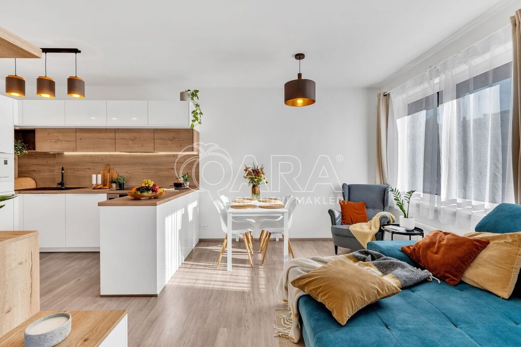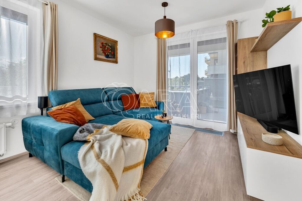 Byt byl dokončen v roce 2022 ve vyšším standardu a stále „voní novotou“. Součástí je moderní kuchyňská linka na míru se spotřebiči AEG a Elektrolux (trouba, indukce, lednice s mrazákem, myčka, digestoř, mikrovlnka), kvalitní vinylová podlaha, podlahové vytápění v koupelně s časovačem, elegantní bezfalcové interiérové dveře s magnetickými zámky, předokenní rolety, systém rekuperace vzduchu i zabezpečovací systém. Oceníte také praktickou technickou místnost pro pračku a sušičku.