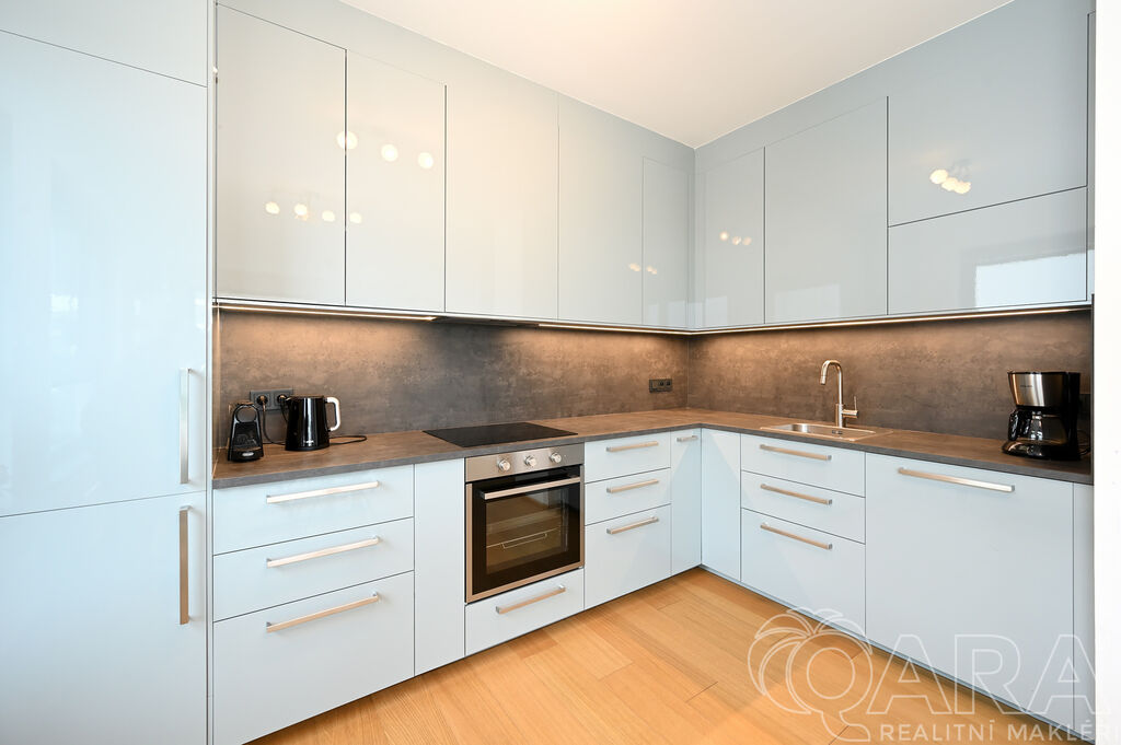 Právě v tomto komplexu, na adrese Azzoniho, Praha 10 – Malešice, vám nabízím moderní a prostorný byt 3+kk ve 3. patře novostavby s výtahem. Byt má výměru 80,5 m² a náleží k němu balkon o velikosti 11,6 m², garážové stání a rohový sklep o rozloze 3,9 m², který patří k největším v domě. Nábytek zobrazený na fotografiích patří současnému nájemci a není součástí pronájmu.