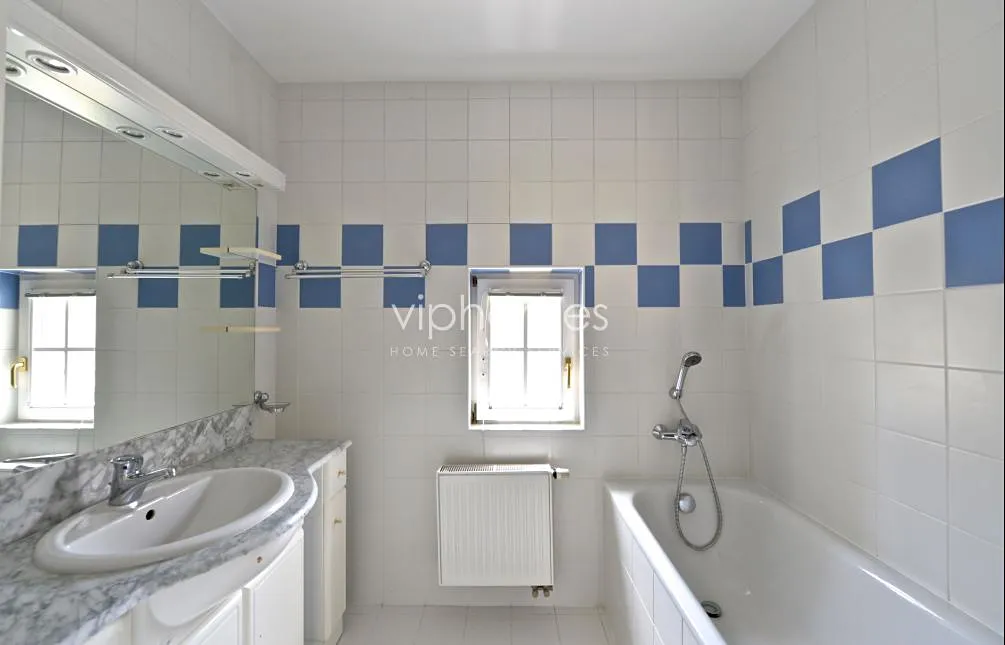 Dům má v přízemí obývací pokoj, plně vybavenou kuchyň, jídelnu a prádelnu, dále toaletu pro hosty, vstup do garáže a vstupní halu. Vstupní halu doplňuje šatna s úložným prostorem. Z obývacího pokoje je vstup na terasu s posezením a menší zahradu. V patře jsou situovány čtyři ložnice, dvě hlavní s en-suite koupelnami. Jednu ložnici doplňuje šatna, dále je v patře třetí koupelna se sprchou a samostatná toaleta. Vestavěné skříně, plovoucí podlahy, centrální vysavač, pračka, sušička, alarm, satelitní připojení, vysokorychlostní internet. . Velmi příjemné prostředí, ideální pro rodiny s dětmi.