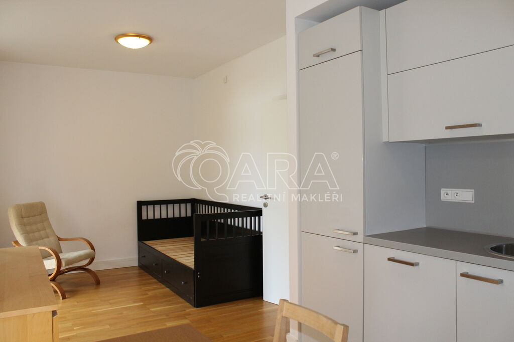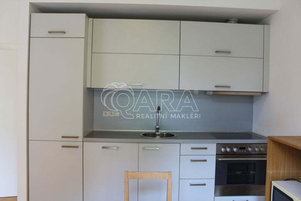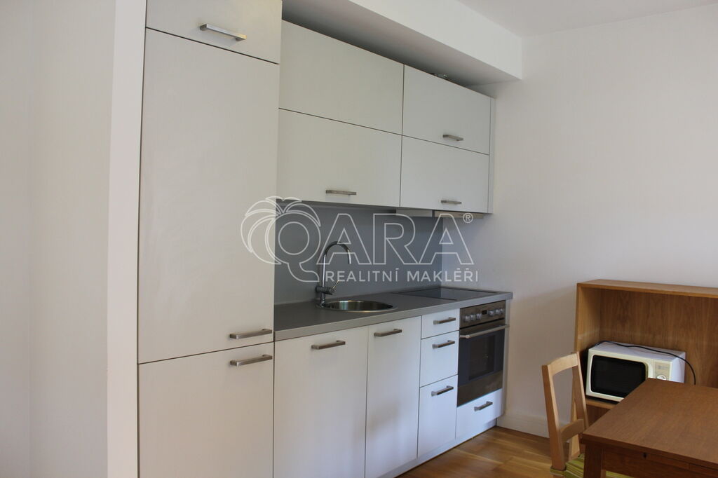 V exkluzivním zastoupení majitele nabízíme k pronájmu útulný a světlý byt 1+kk, 30 m2 plus 2 balkony, orientovaný na jižní světovou stranu do vnitrobloku domu. Byt se nachází v 2. NP rezidenčního areálu U Pivovaru. Byt je částečně vybavený (obývací pokoj - rozkládací postel Hemnes bez matrace, křeslo, komoda 6 zásuvek; kuchyňský kout - vestavěná lednice s mrazákem, sklokeramická varná deska, el. trouba s horkovzduchem a grilem, digestoř, myčka - vše zn. Elektrolux, mikrovlnná trouba, rychlovarná konvice; rozkládací jídelní stůl a dvě židle; koupelna se sprchovým koutem a WC; chodba - vestavěná šatna včetně zrcadlových dveří nabízející dostatek úložného prostoru). Byt je vhodný pro 1 osobu, nekuřák. Nájemné 10.000,- Kč, zálohy na služby 5.249,- Kč + el. v bytě 1.000,- Kč, jistota 10.000,- Kč, provize RK.
