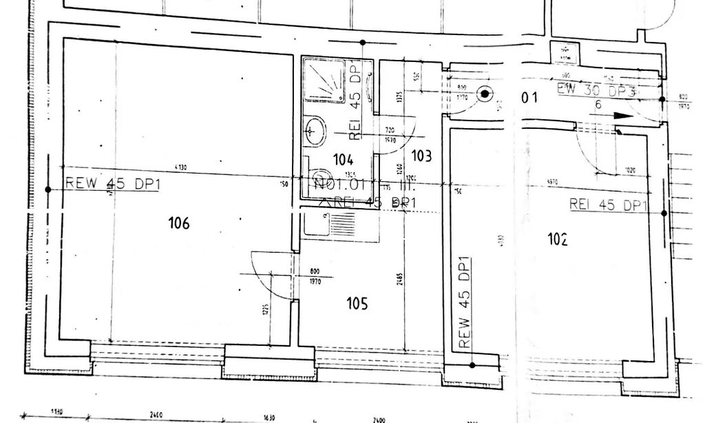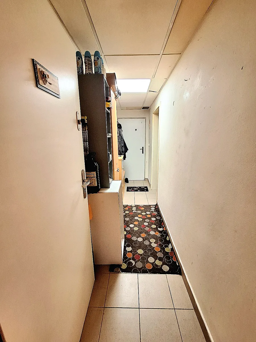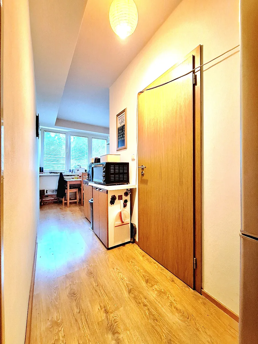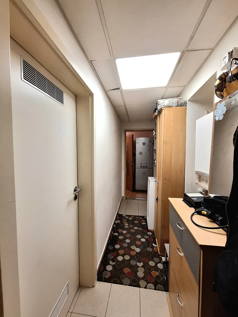 Vstupní chodba, pokoj se samostatným vstupem, na chodbu navazuje kuchyň, koupelna se sprchovým koutem a závěsným WC, další samostatný pokoj (možnost vybudovat francouzské okno se vstupem na terasu.