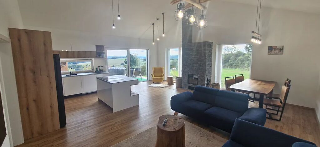 Nabízíme k prodeji novostavbu rodinného domu o dispozici 5+kk, který se nachází v klidné části obce Lhotě u Zlína. Dům je situován na slunném místě s krásným výhledem do okolní krajiny. Lokalita na okraji Vizovických vrchů zajišťuje nejen příjemné prostředí pro bydlení, ale také výbornou dostupnost – do Zlína, Otrokovic nebo Napajedel se dostanete během několika minut.