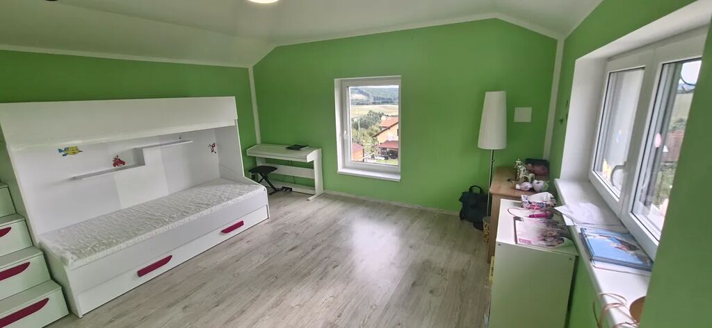 Do patra vede schodiště, které ústí do chodby se vstupy do dvou pokojů a dvou šaten. V patře je také připravena místnost určená k vybudování druhé koupelny.