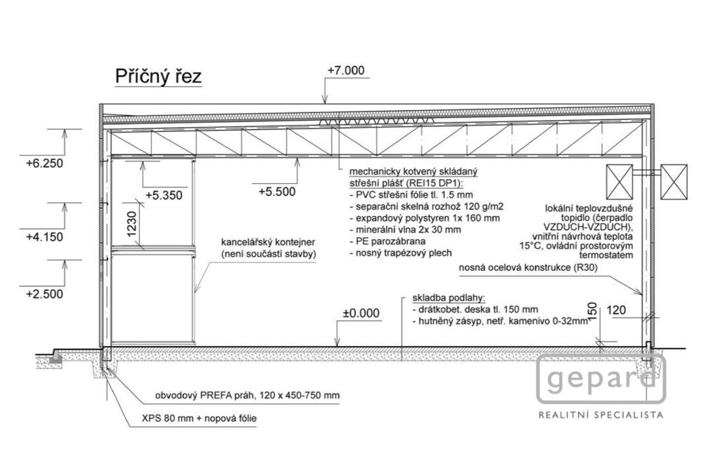 - Obvodový plášť: polyuretanový panel tl. 100 mm