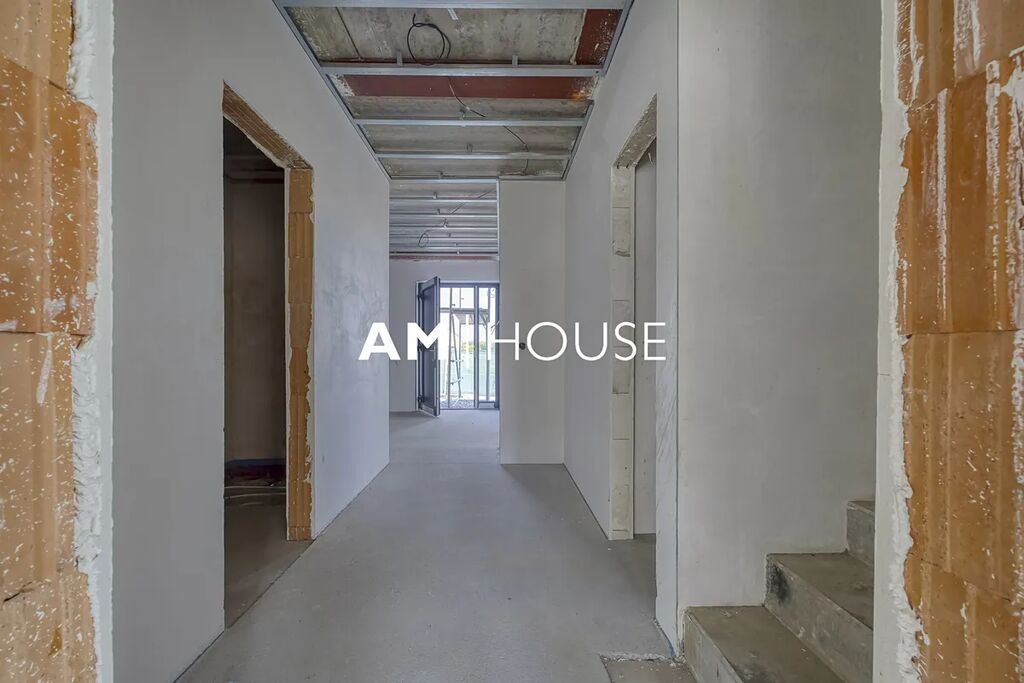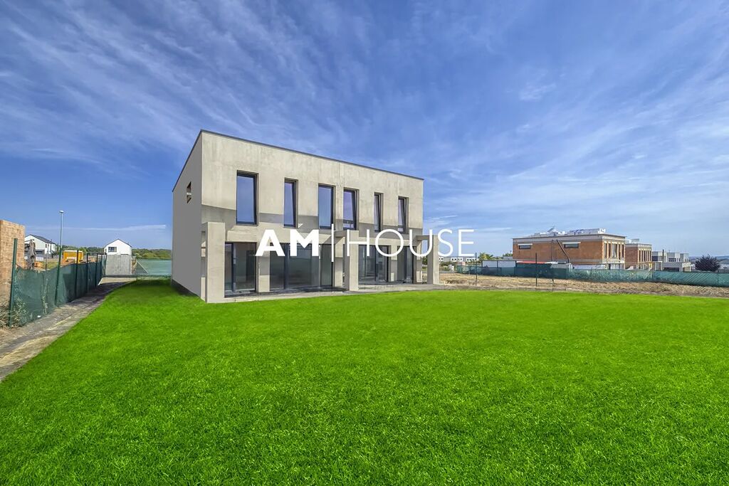 Tento unikátní byt se nachází v moderním dvojdomě na pozemku o rozloze 372,56 m². Prodává se jako samostatná bytová jednotka zabírající celou polovinu domu se samostatným vchodem, garáží s možností přestavby na plnohodnotnou místnost (např. pracovna nebo pokoj) díky podlahovému vytápění, a dvěma venkovními parkovacími stáními.