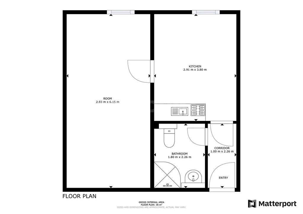 - Dispozice 2+kk s celkovou podlahovou plochou 36 m2.