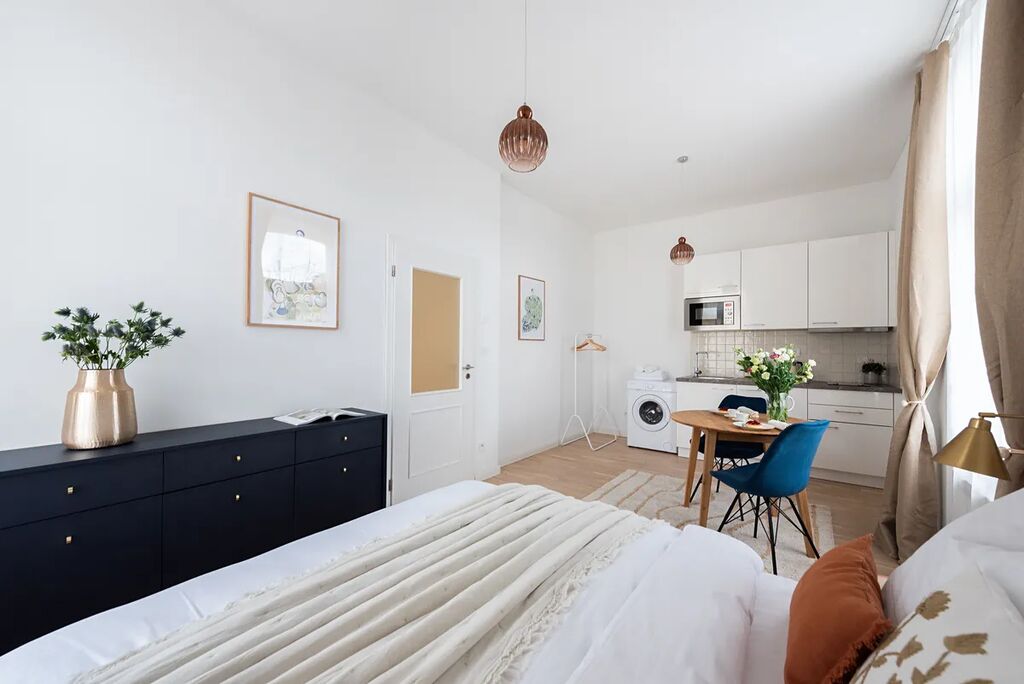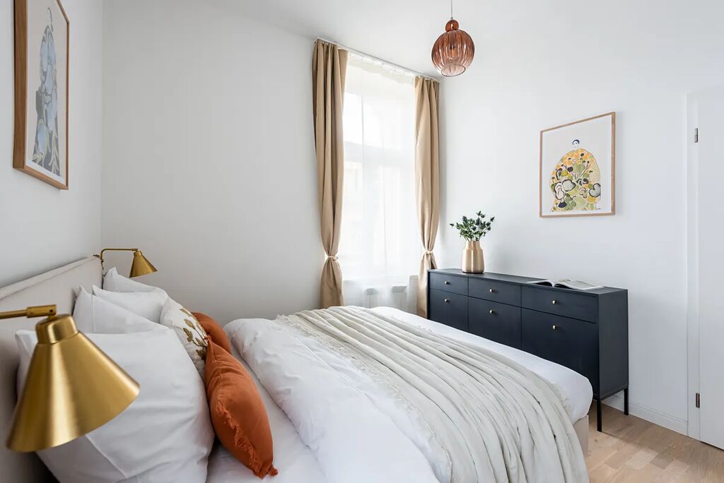 Interiér bytu byl navržen zkušenou designérkou a nabízí elegantní kombinaci stylu, funkčnosti a originality. Světlý a vzdušný prostor s důmyslným řešením interiéru vytváří příjemné místo pro život i investici. Ačkoliv v naprostém centru Prahy, byt je díky své západní orientaci naprosto tichý a klidný.