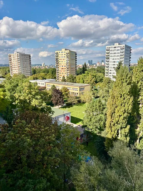 Dům je na začátku ulice Novodvorská se nádherným výhledem a kompletní občanskou vybaveností v místě.