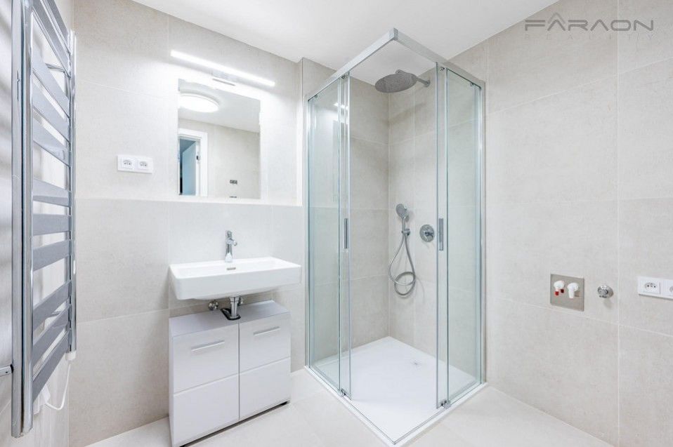 Vybavení bytu zahrnuje moderní kuchyňskou linku se spotřebiči elektrickou troubou, indukční varnou deskou, myčkou a lednicí s mrazákem a dostatek úložných prostor včetně vestavěných šatních skříní. V bytě je instalováno podlahové topení, rekuperace, elektrické předokenní rolety, kvalitní osvětlení, plastová okna s izolačními skly a vinylová podlaha v dekoru dřeva. Byt disponuje kompletně vybavenou předsíní s úložnými prostory a skříněmi vše je nové a připravené k okamžitému užívání.