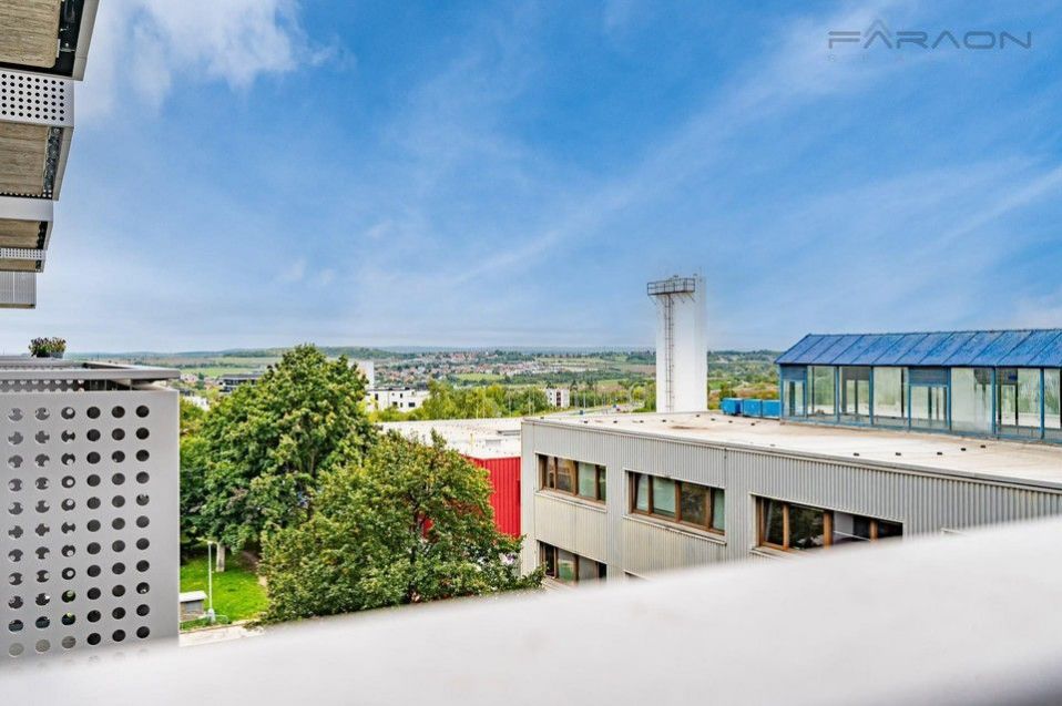 Dispozice bytu je řešena velmi účelně vstupní chodba navazuje na světlý obývací pokoj s plně vybaveným kuchyňským koutem (vestavěné spotřebiče včetně myčky, trouby a varné desky). Z obývací části je přímý vstup na balkon s krásným výhledem. Samostatná ložnice poskytuje dostatek prostoru pro dvoulůžko i úložné řešení. Hlavní koupelna je vybavena sprchovým koutem, umyvadlem a prostorem na pračku. Toaleta s umyvadlem je v samostatné koupelně.