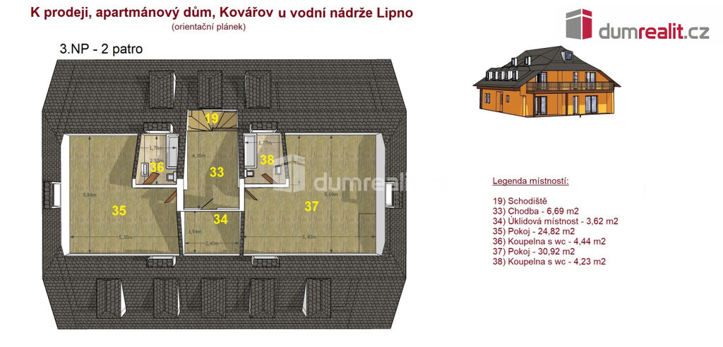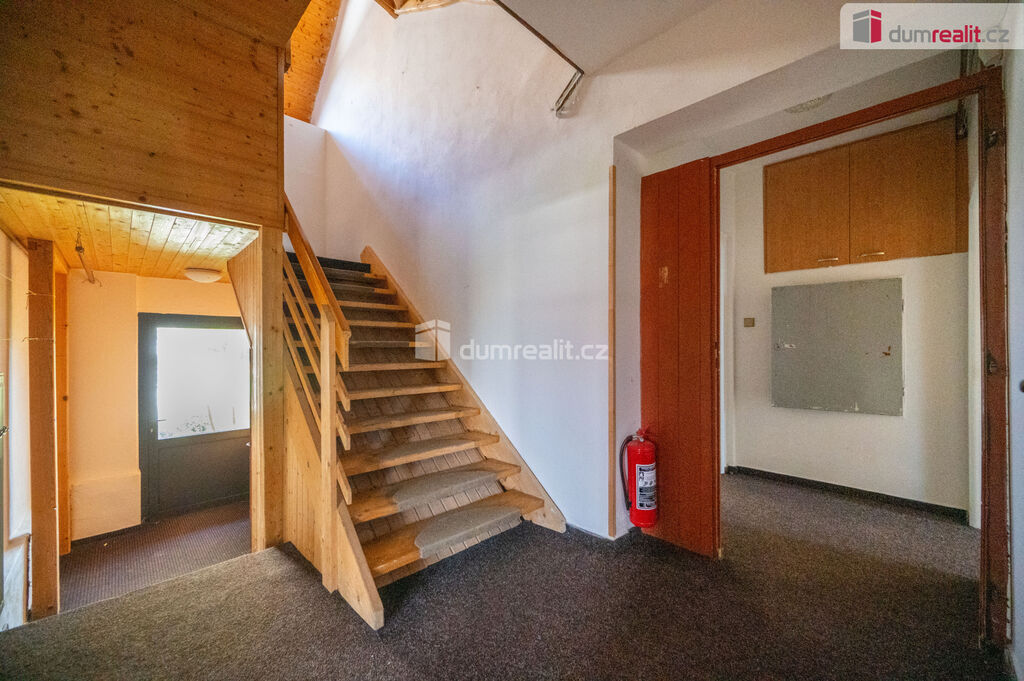 Dumrealit.cz Vám zprostředkuje prodej objektu s kuchyní, restaurací a 8 pokoji (4 apartmány + 2 pokoje s koupelnami) pro rodinnou rekreaci v obci Kovářov - Frymburk u vodní nádrže Lipno. Prodávaný objekt s pozemky naleznete na LV č. 2320 v kú Kovářov, obec Frymburk. Podrobné rozkreslení dispozice objektu naleznete na orientačním plánku mezi fotografiemi. Dům je zděný bez zateplení. Stropy jsou kombinované ŽB a dřevěné. Rozvody vody a kanalizace jsou plastové. Vytápění a ohřev teplé vody je řešen plynovým kotlem, nádrž na plyn je zakopaná v zemi za domem na pozemku. Elektřina je částečně v mědi. Objekt je připojen na veřejný vodovod a obecní kanalizaci. Okna jsou téměř všechna plastová s dvojskly. K dispozici máme pasportizaci stavby, projektovou dokumentaci na přestavbu domu, kompletní zákres inženýrských sítí, územně plánovací informaci s možnostmi využití zástavby na pozemku. Možnost koupě objektu s pozemky jako firmu za zvýhodněnou cenu. Doporučuji prohlídku, objekt je vhodný k podnikatelskému záměru. Zajistíme Vám financování a veškerý právní servis, popř. architekta a doporučíme stavební firmu. Více informací Vám poskytne realitní makléř Tomáš Pelda z realitní kanceláře A TEMPO fungující pod ochrannou známkou dumrealit.cz.. Ev. číslo: 652662.