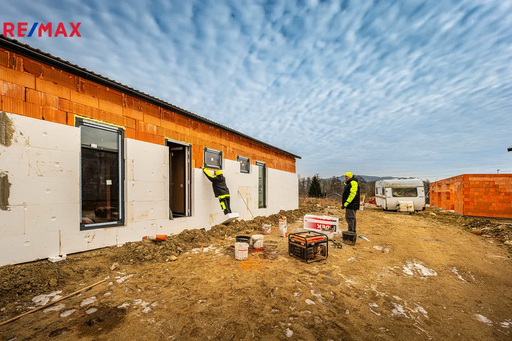 Výstavba je právě teď v procesu dokončované hrubé stavby. Právě probíhá zateplování fasády. Fotografie ze stavby byly pořízeny 16.1.2025. Výhodou tohoto stádia pro kupující je možnost zasáhnout a nechat si byt dokončit dle vlastních preferencí a představ. Předpokládané předání nemovitostí je plánované na začátek léta roku 2025.