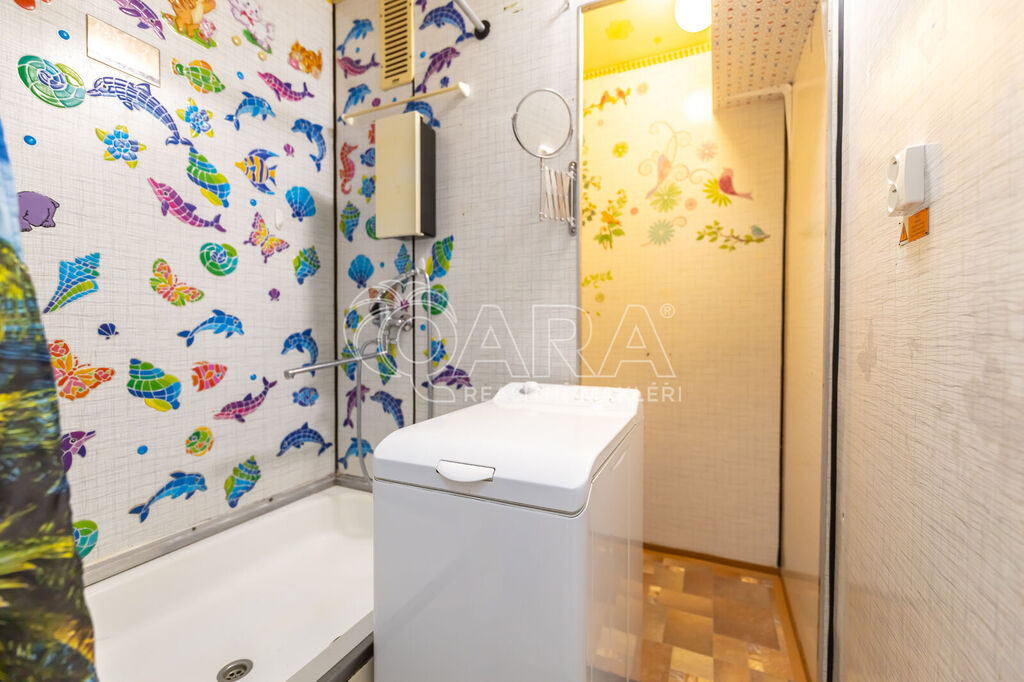 Byt se nachází ve čtvrtém patře a disponuje vstupní chodbou, koupelnou se sprchovým koutem a WC, kuchyňským koutem a obývacím pokojem. Byt je vytápěn dálkově včetně ohřevu vody. Společná kolárna a sušárna se nachází v přízemí domu. Úklid společných prostor řeší úklidová firma.