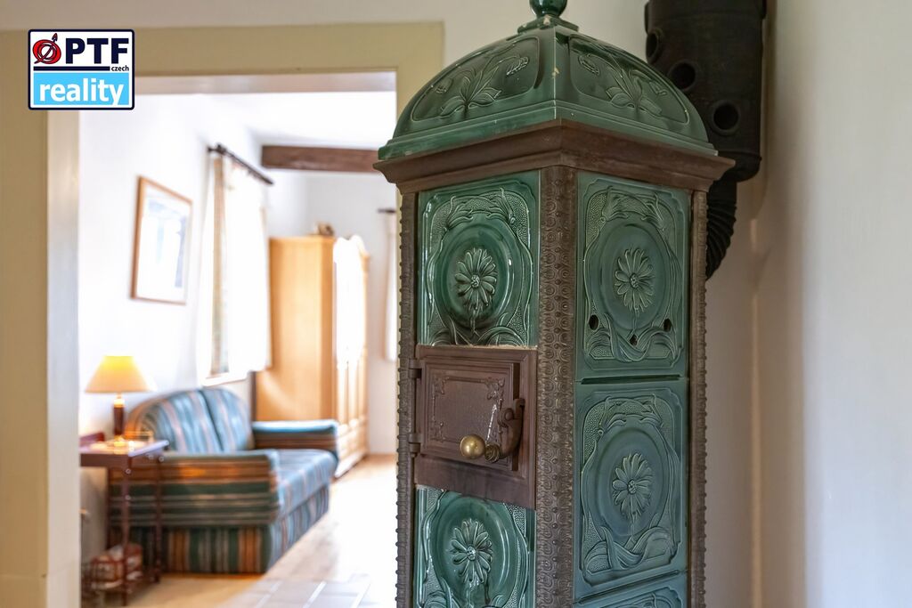 Vaření: kachlová kamna + elektrická varná deska v kuchyni