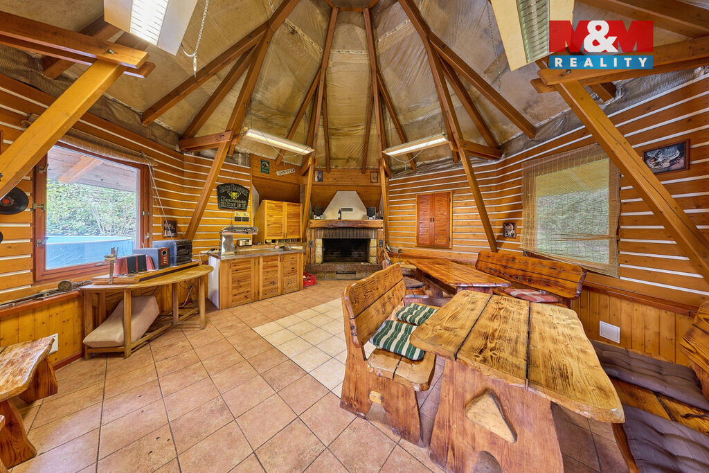 Krytý altán s krbem a grilem – skvělé zázemí pro hosty i menší akce.