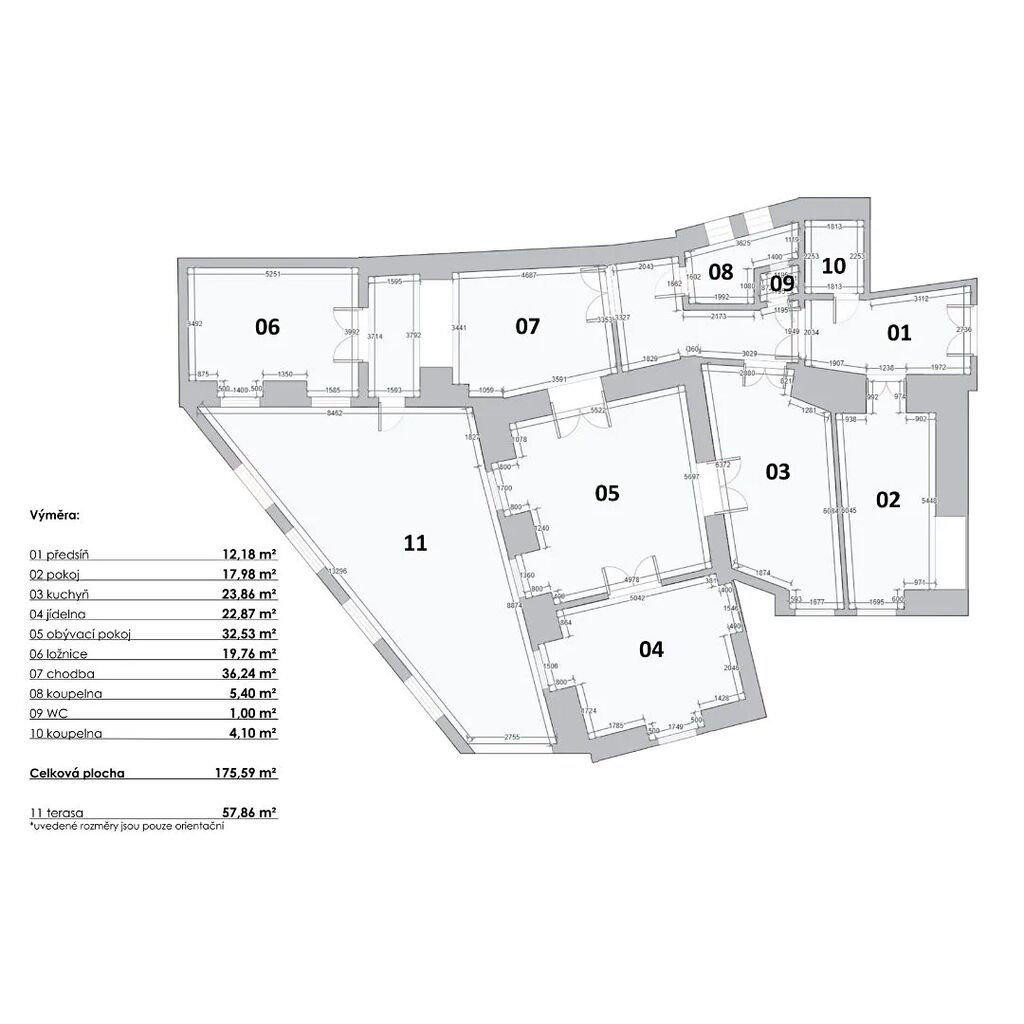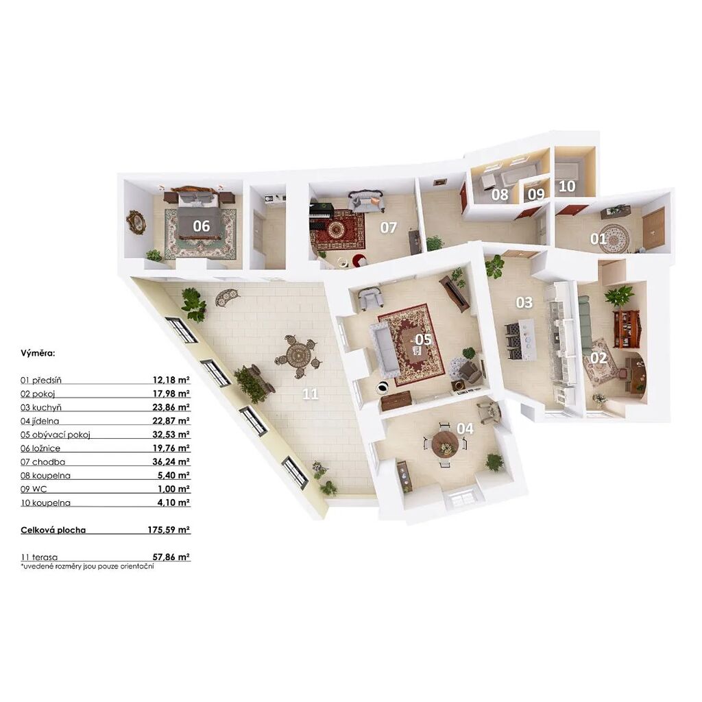 173 m² obytné plochy + 44 m² terasa