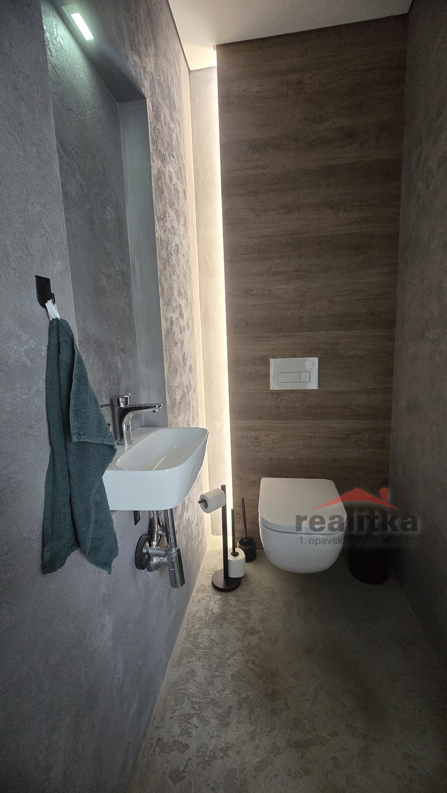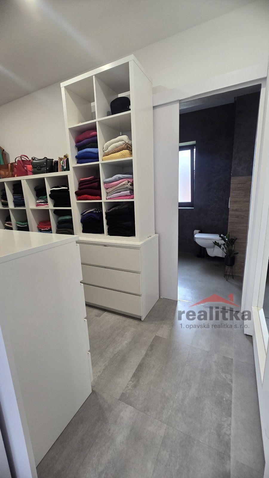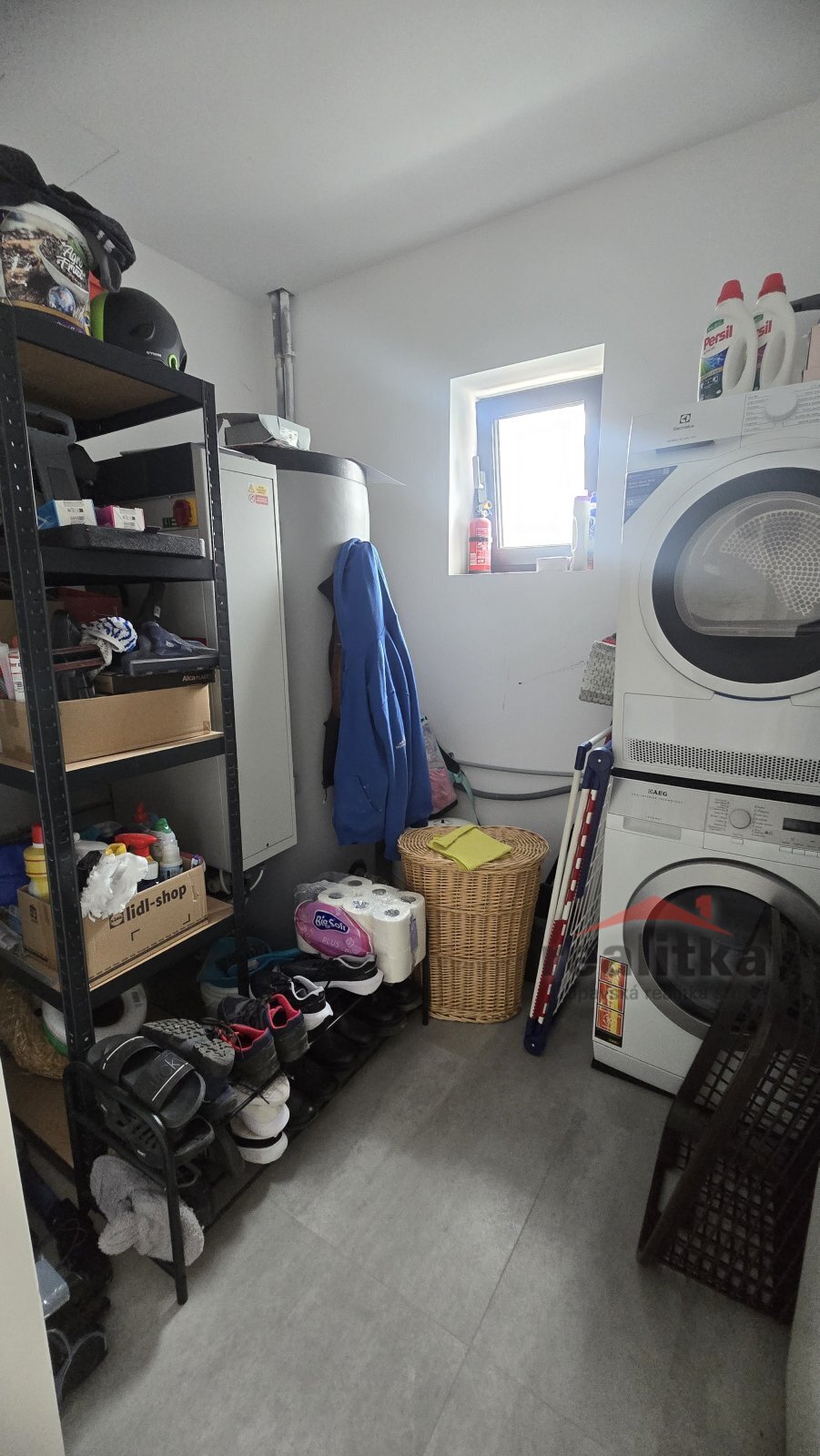 Interiér domu má moderní, kvalitní prvky. V celém domě je liniové zabudované osvětlení, bezobložkové interiérové dveře do všech místností, vinylová bezprahová podlaha, podlahové topení ve všech prostorech domu, betonové designové stěrky, hliníkové okna včetně žaluzií na dálkové ovládání, 2x posuvné terasové dveře - HS portál. Všechny pokoje v domě jsou samostatné se vstupem z předsíně. Ve všech pokojích je pevný internet. Ložnice má vstup do šatny a koupelny, kde jsou 2 umyvadla, wc a sprchový kout. Další koupelna je vedle 2 dětských pokojů, jsou zde opět 2 umyvadla, vana, sprchový kout, další wc je samostatně. Obývací pokoj je spojený kuchyňskou částí a jídelnou se vstupem na velkou terasu s posezením. V obývací části je vše připraveno na zabudování krbu se zkolaudovaným komínem. V prostorné kuchyni je zabudovaná lednice, mrazák, myčka, trouba, mikrovlnka, digestoř a velká indukce a je zde také velká potravinová komora. Obývací pokoj je situovaný na JV stranu, dětské pokoje jsou na stranu severní a ložnice na stranu JZ. Ve vstupní chodbě jsou zabudované skříně a odkládací stěna. Dům je postaven z itongu 37, zateplen 10cm polystyrenem, střecha je Satian - zateplený plech a 50cm izolace. Vytápění domu je tepelným čerpadlem včetně ohřevu vody. V domě je také technická místnost, kde se nachází záložný elektro zdroj, 300l hydrobox, napojení na pračku a sušičku.