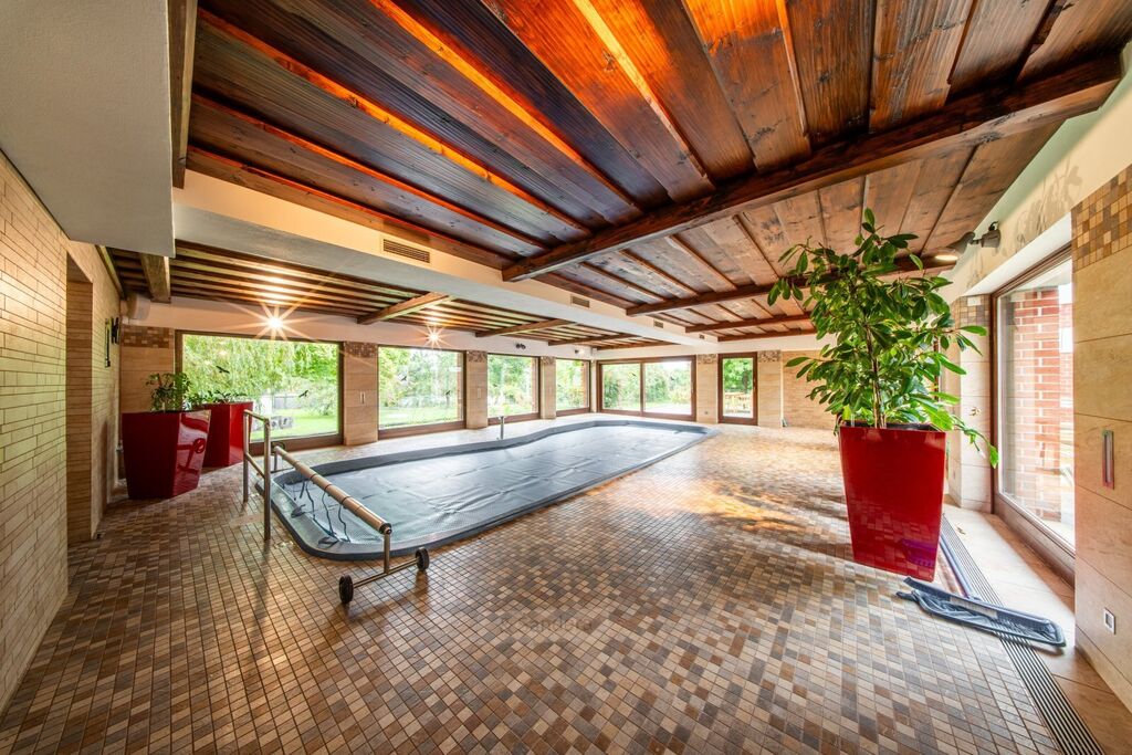 Hlavní stavba - rozlehlá rezidence do U s vnitřním nádvořím, garáže, hostinský byt, technická místnost, kancelář, archiv, serverovna, sociál a kuch. zázemí pro kancelář, bazénová místnost, wellness se saunou a kompletním zázemím, průchozí do RD přízemní části hlavní stavby, kde je obývací pokoj, kuchyňská místnost s jídelním prostorem, prosklení a vstupy do zahrady a na terasy, šatna, koupelna, komory a WC, ložnice, prostorné zádveří pro hlavní vstup do RD části z nádvoří, vstup do suterénu, hala se schodištěm do patra, v patře vstupní místnost vhodná jako průchozí obývací pokoj, zrcadlově pak dvakrát šatna s koupelnou, samostatná WC a prostorné ložnice, v suterénu domu pak dvě vinotéky a hodovna, dále pak sklepní místnost a samostatné WC,