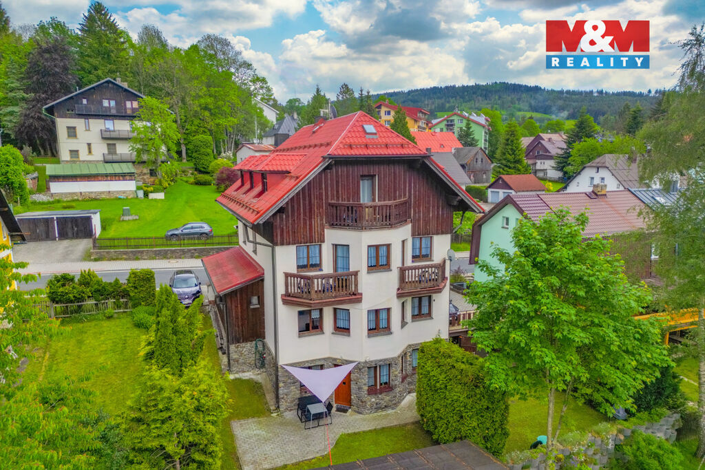 Nabízíme k prodeji apartmánový/bytový dům v atraktivní lokalitě Železné Rudy, pouhých 200 metrů od centra města, sjezdovky a lanového centra u nádraží.