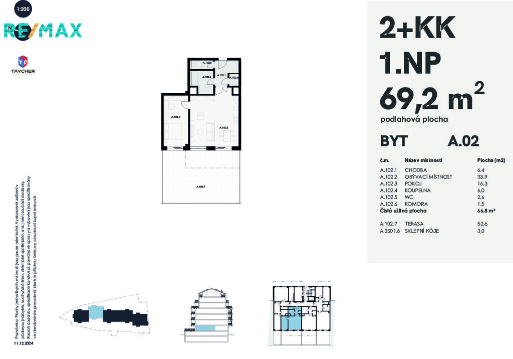 Nabízím k prodeji moderní byt 2+kk o velikosti 69 m² s prostornou terasou 52,6 m2, která je ideálním místem pro relaxaci na čerstvém vzduchu, posezení s přáteli nebo grilování.