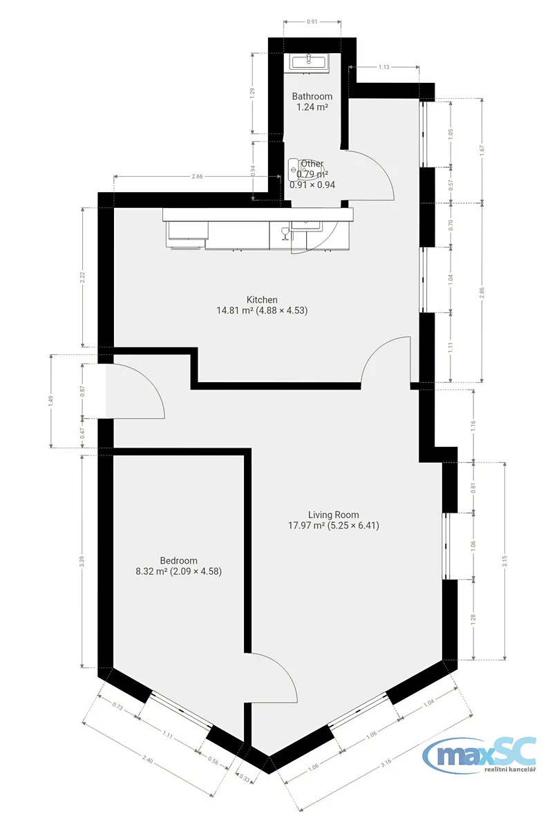 Byt je zařízen kuchyňskou linkou včetně spotřebičů.