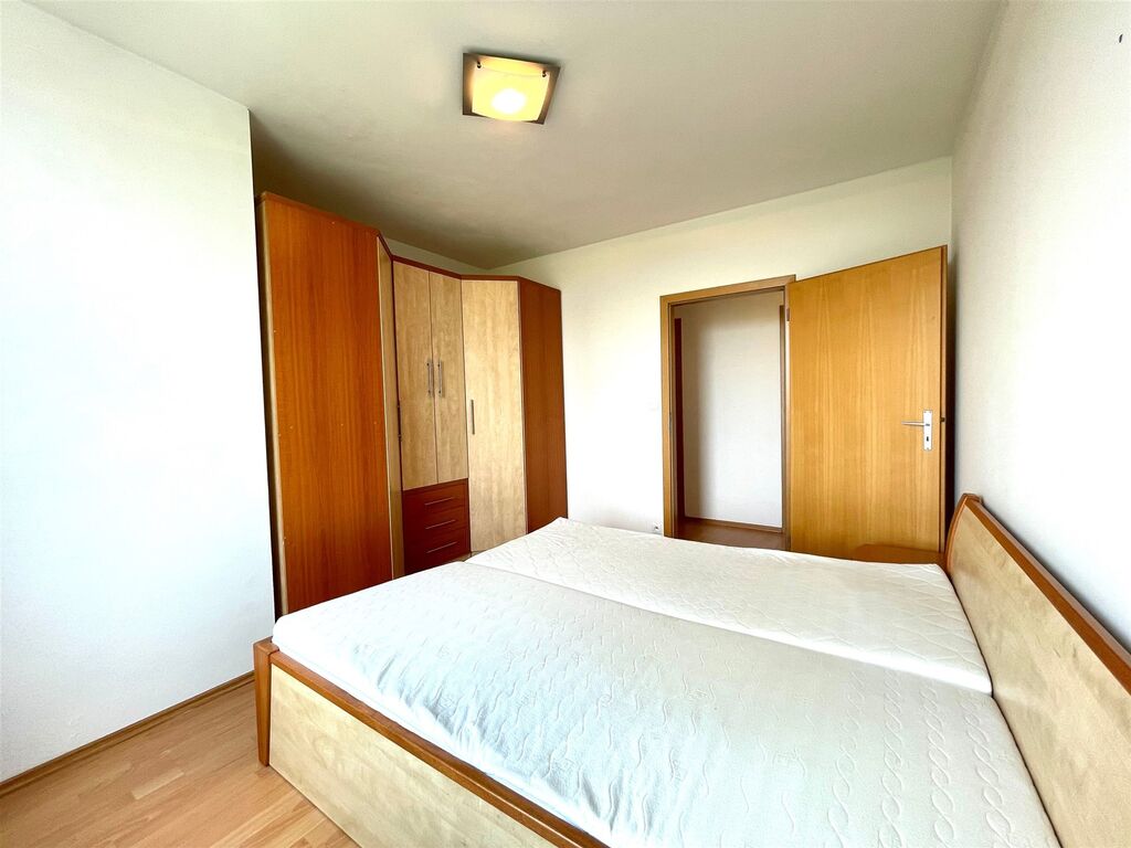 Byt disponuje obývacím pokojem s kuchyňským koutem (vybavený vestavěnými spotřebiči: horkovzdušná trouba, varná deska, digestoř, myčka, lednice s mrazákem), terasou přístupnou z obývacího pokoje, ložnicí, pokojem/pracovnou, koupelnou s vanou, samostatným WC, komorou/šatnou a předsíní. Byt je částečně vybaven: jídelní stůl + 4 židle, police, lampa, dvojlůžko s matracemi, 2 noční stolky, šatní skříň, 4 židle, úložné skříně, komoda a předsíňová stěna. Vytápění a ohřev vody je centrální, okna jsou plastová s izolačním dvojsklem a na podlahách je kombinace dlažby a plovoucí lamino podlahy. Z terasy a oken bytu je velmi pěkný panoramatický výhled.