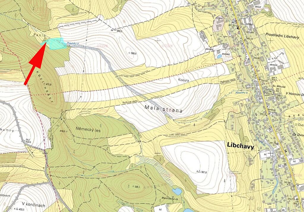 Prodáme pozemek v k.ú. Horní Libchavy, parc.č. 1090/2 a další. Louka dobře zavlažovaná, po severním okraji teče Pekelský potok.
