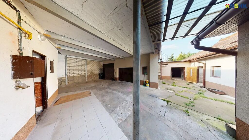 Součástí jsou také garáže, dílny, kůlny, hospodářské části a bývalá sauna. Přes průjezd z ulice Zelená se pohodlně dostanete až na zahradu.