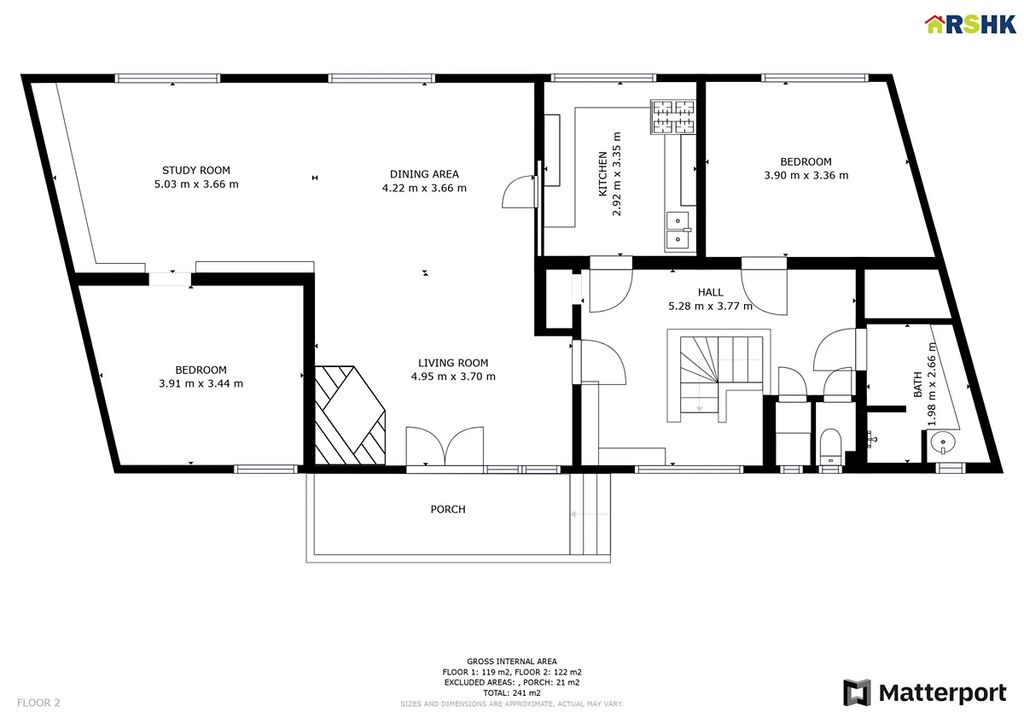 Součástí inzerátu je virtuální 3D prohlídka – projděte si celý dům, změřte si místnosti nebo se podívejte na půdorysy či venkovní prostory v pohledu 360°. Fotografie jsou z doby, kdy byl dům prázdný a nepronajat.