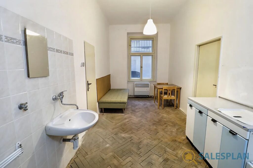 Bytová jednotka se nachází ve druhém nadzemním podlaží komorního domu situovaného ve vedlejší ulici. Je v dobrém a průběžně udržovaném stavu, avšak s potenciálem pro modernizaci dle vlastních představ. Podlahovou krytinou jsou parkety, které po renovaci mohou být zajímavým designovým prvkem. Vzhledem k opravdu vysokým stropům (3,3 m) se nabízí možnost vybudování spacího patra a vytvoření tak dalšího prostoru. Součástí rekonstrukce může být i změna stávající dispozice koupelny a WC s využitím stávající komory. Vstupní chodba poskytuje dostatek úložného místa díky prostoru pro vestavěnou skříň.