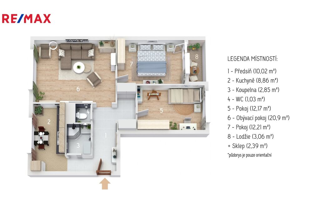 Na bytě dále oceňujeme praktičnost, jako je výtah, který usnadňuje přístup do vyšších podlaží, a také prostorný sklep o rozloze 2,39 m², který poskytne dostatek místa pro uskladnění sportovního vybavení, hraček nebo sezónních věcí.