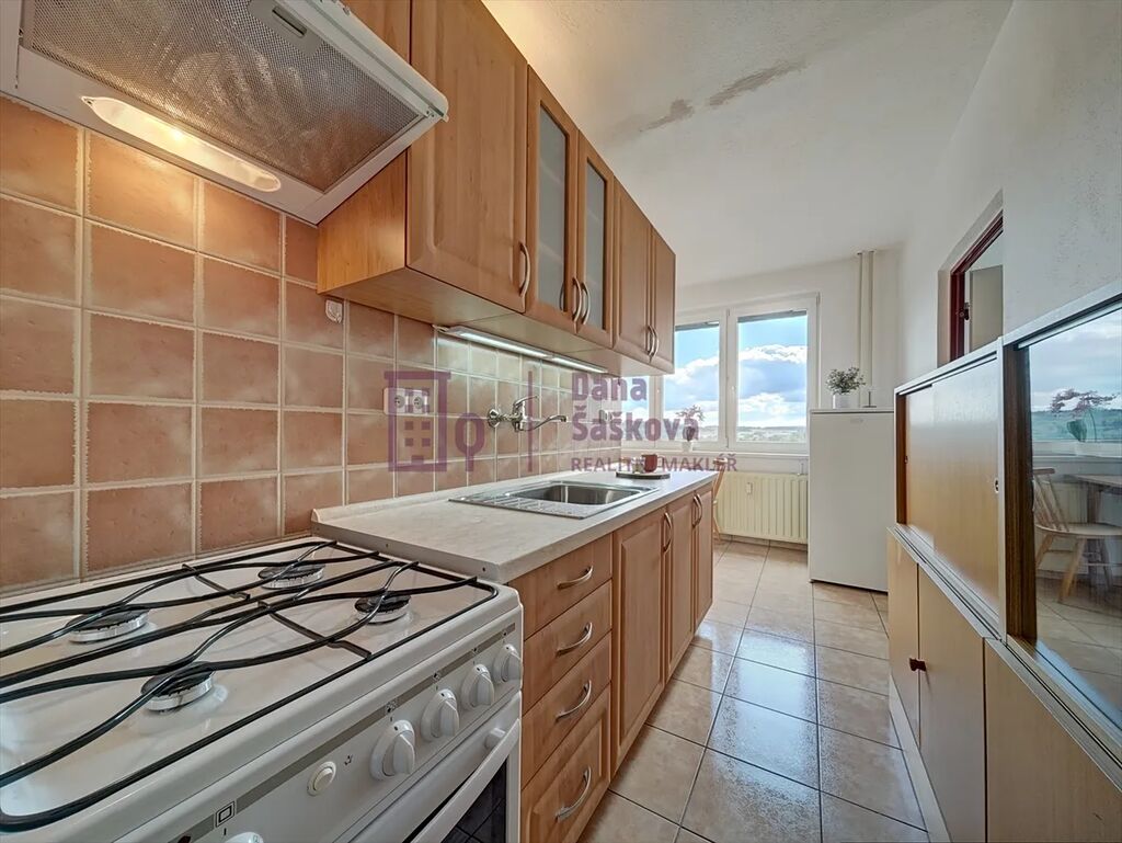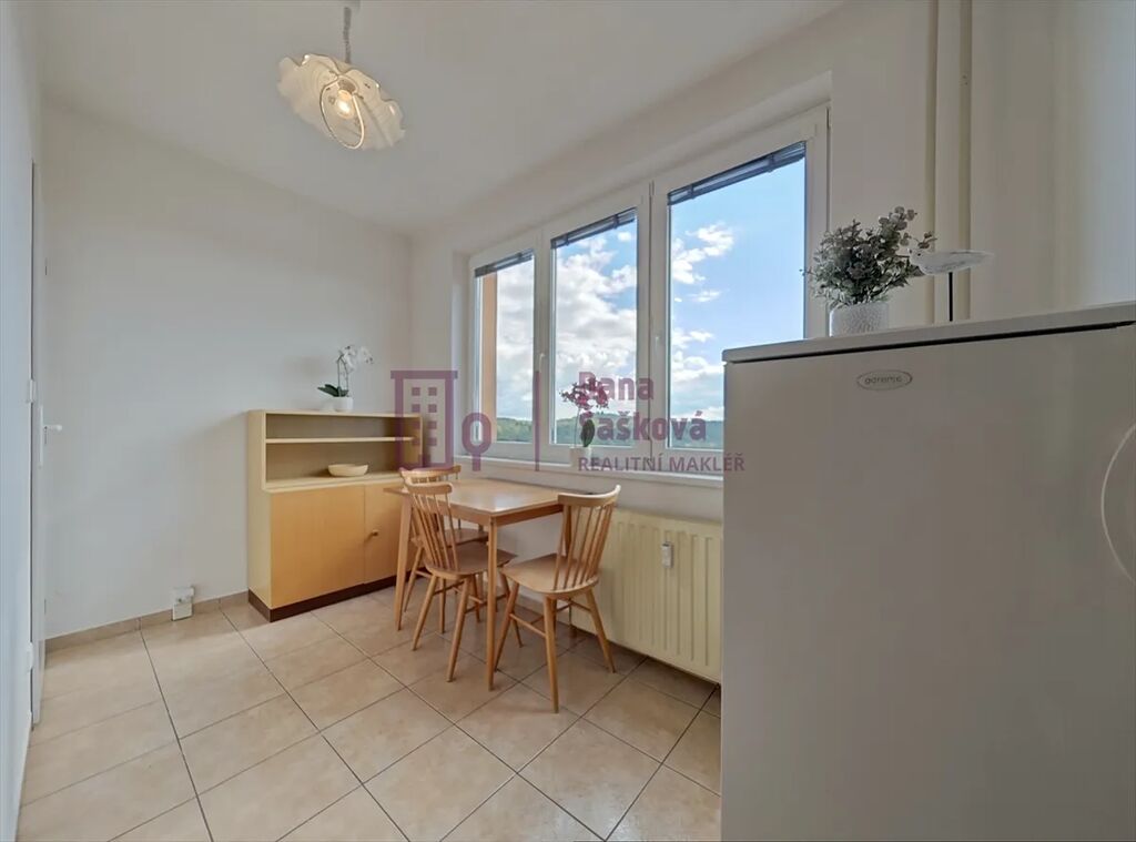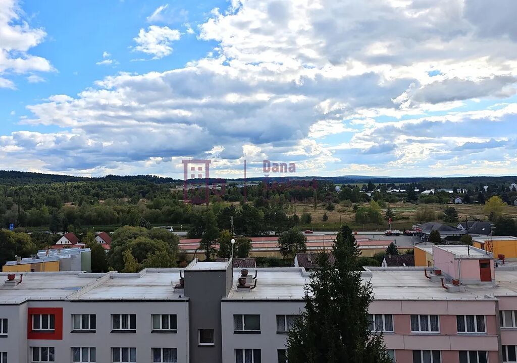 Pronájem slunného bytu o celkové výměře 42 m2 v sedmém patře panelového domu s výtahem na sídlišti Vajgar, Jindřichův Hradec.
